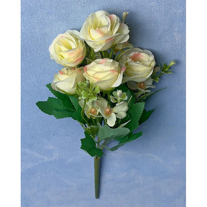 (GD 37) - Bunga Artifisial Rose Pastel x5 Acc Hydrangea Dekorasi Bunga Pelaminan Hantaran Buket Bunga