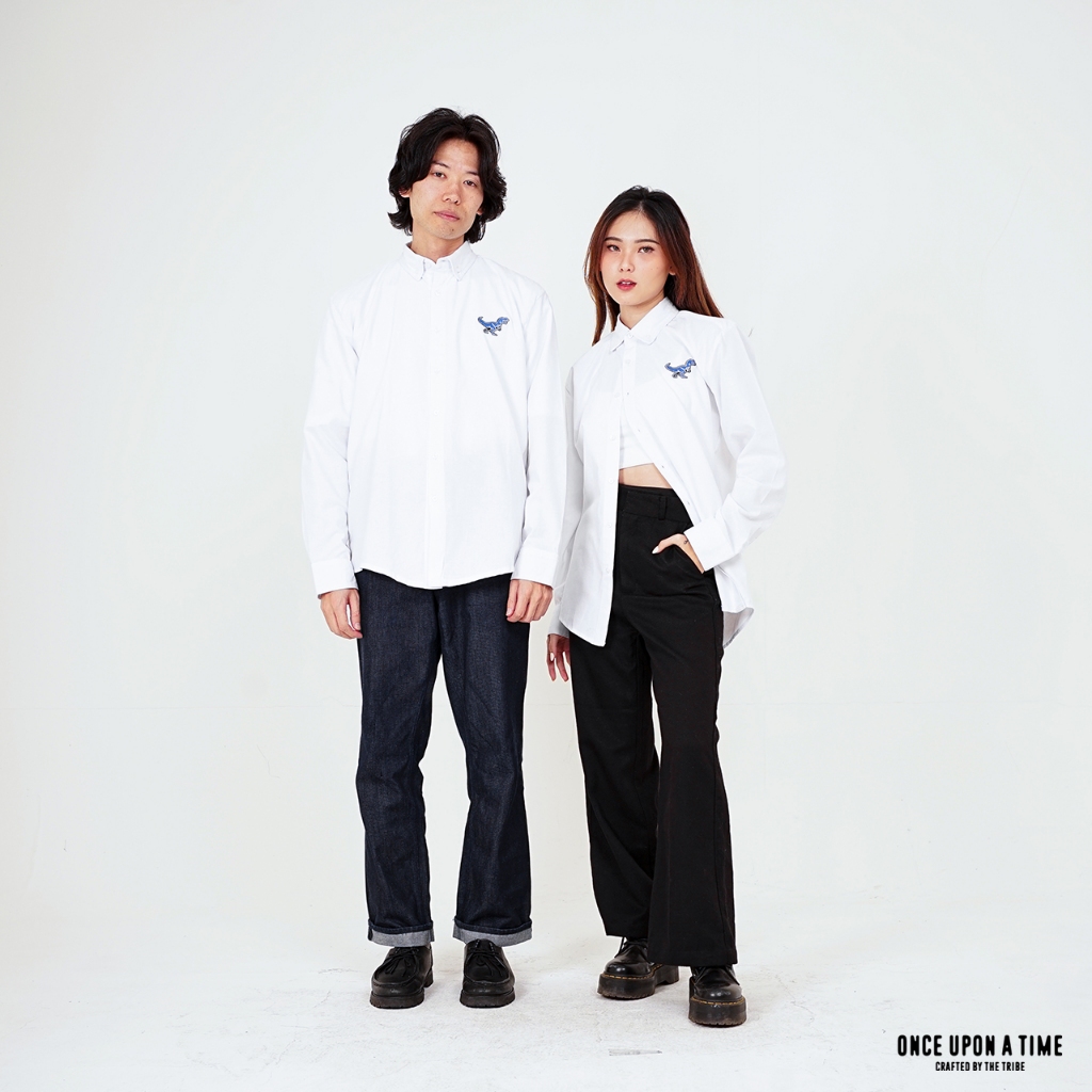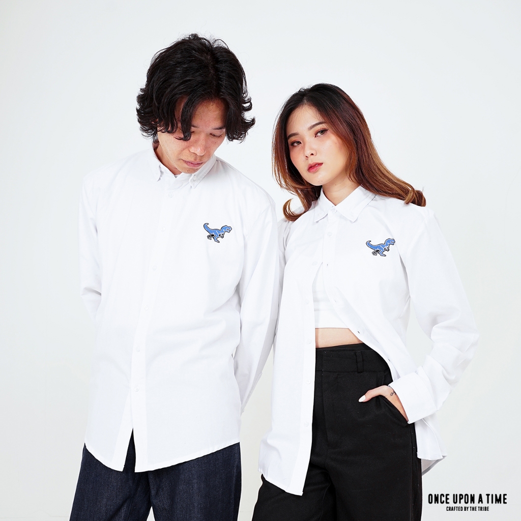 (GE) Rex - Baju Atasan Kemeja Hem Polos Pria Wanita Lengan Panjang Oxford Shirt Cowok Cewek Unisex Warna Putih - White L/S | Size S - XL