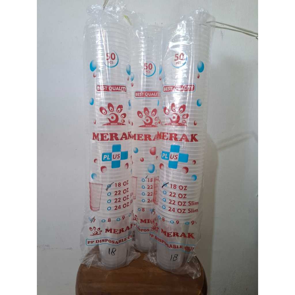 Gelas Plastik / Gelas Es Teh Jumbo Merak Datar 7 Gram (Ukuran 18 oz/22 oz) isi 50 pcs (GELAS SAJA)