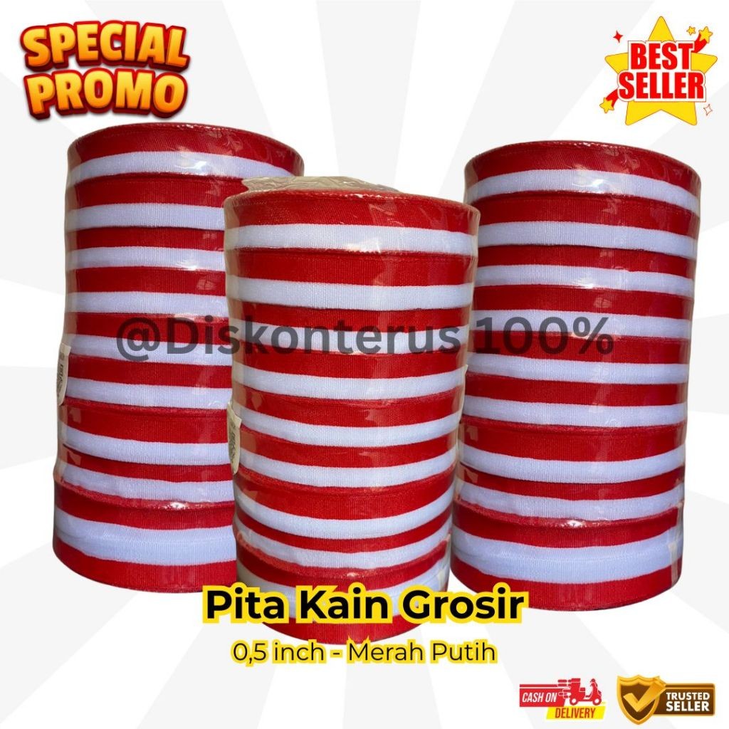 (GROSIR/1 PAK) PITA KAIN ROLL MERAH PUTIH/Pita Ikat Kepala/ Pita kain kado aksesories agustusan/ pita kado / pita hias/ pita rambut/pita kain merah putih/ pita roll
