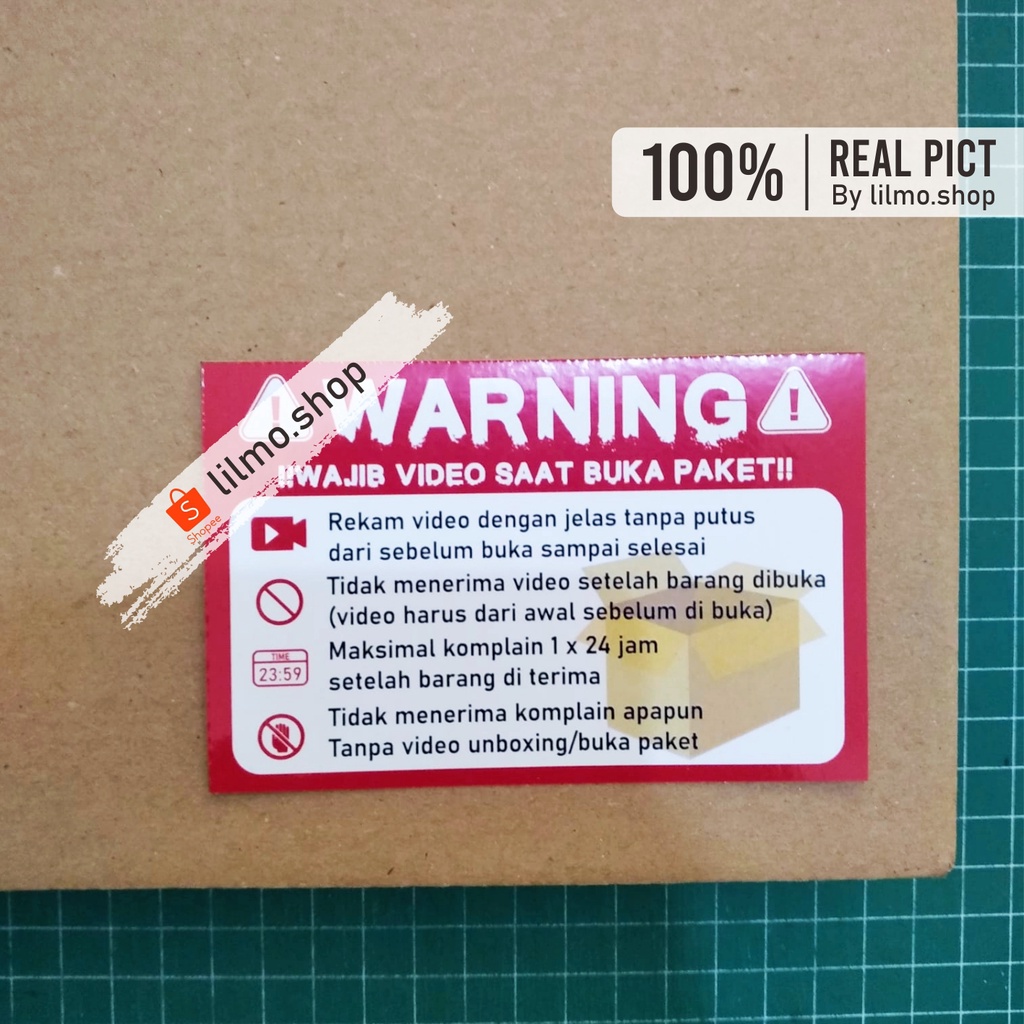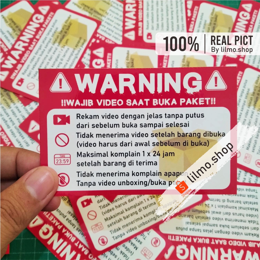 (HARGA PER PACK ISI 20 PCS) Stiker Unboxing, Stiker Peringatan Video, Stiker Video Buka Paket Uk 10 x 6,5 cm