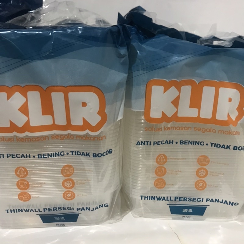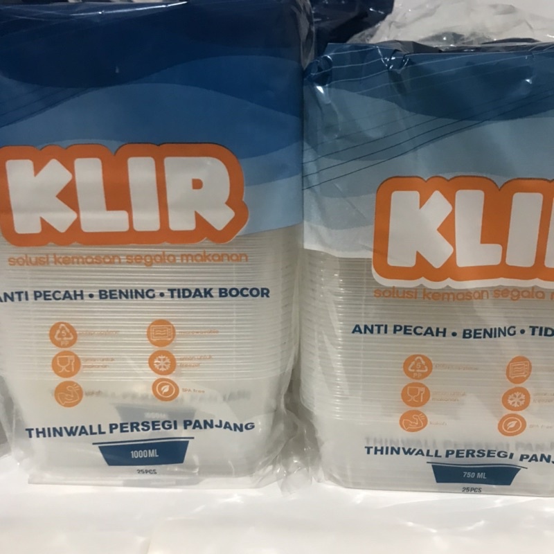 (I-26) KLIR KIIP Thin wall Kotak Makan klir ThinWall 500ml 650 750ml 1000ml isi 25 pcs 1000 square