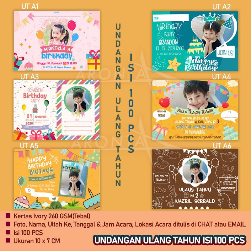 (ISI 100) UNDANGAN ULANG TAHUN / UNDANGAN ULTAH / KARTU UNDANGAN ULTAH / ULTAH ANAK / HAPPY BIRTHDAY