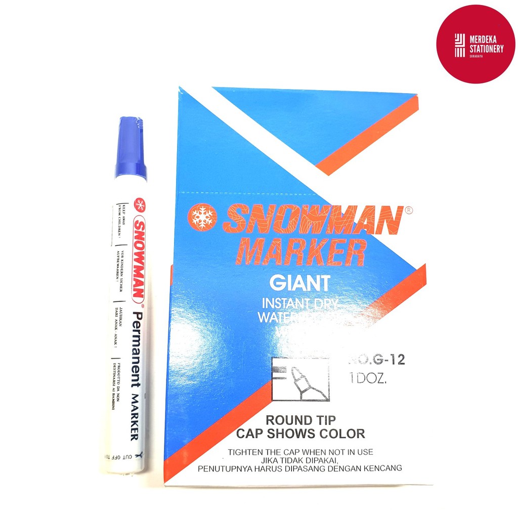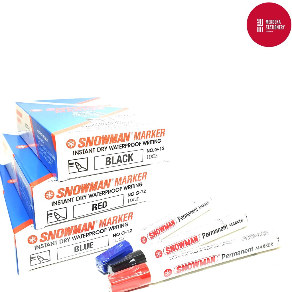 (ISI 12)Spidol/Sepidol/Marker Permanen Snowman G12/G-12(HITAM/BIRU/MERAH)