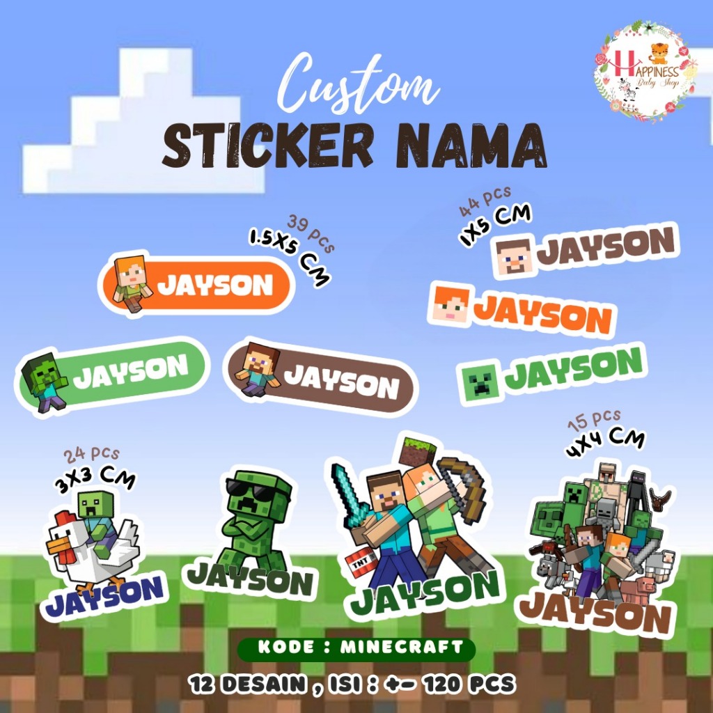 (ISI 120) Sticker Custom Nama Karakter / Sticker Label Nama Anak / Stiker Set Pack / Stiker Nama Anak Waterproof
