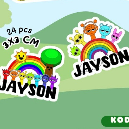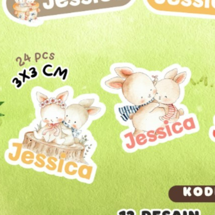 (ISI 24) Sticker Label Nama Anak / Sticker Custom Nama Karakter / Stiker Set Pack / Stiker Nama Anak Waterproof