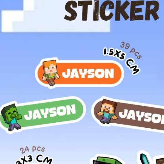 (ISI 39) Sticker Label Nama Anak / Sticker Custom Nama Karakter / Stiker Set Pack / Stiker Nama Anak Waterproof