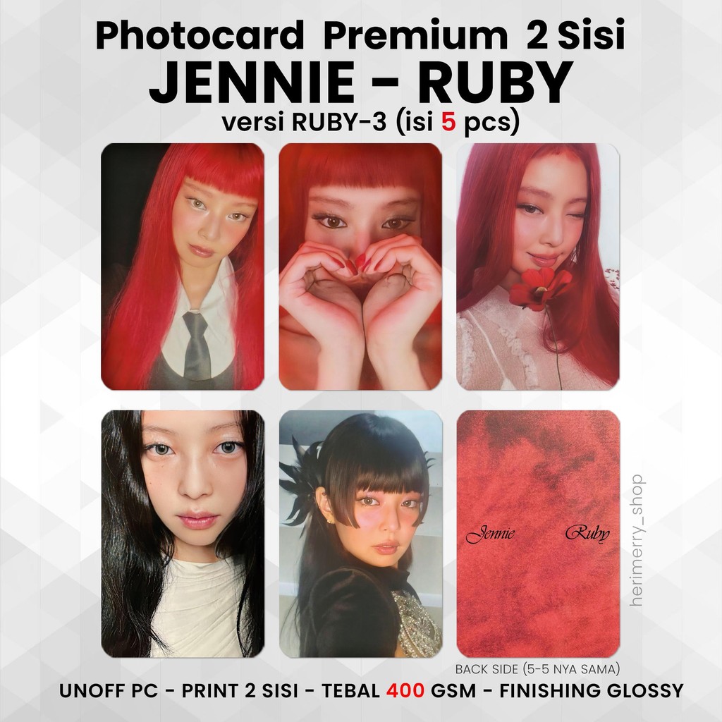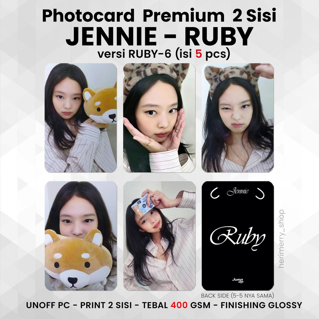 (ISI 5 PCS) Photocard JENNIE RUBY - PC Premium 2 Sisi Kartu Kpop Merch Unofficial BP Jane