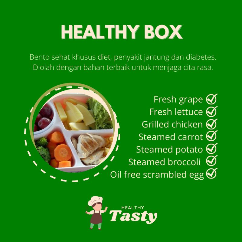 (JAMBISTOREID) ShopeeFood Makanan Sehat Healthy Box Bento Lunch Praktis Menu Makan Siang Diet Sehat by Healthy Tasty Catering Katering Diet Sehat Jambi Premium Buah Anggur Sayur Brokoli Wortel Kentang Rebus Ayam Bakar Telur