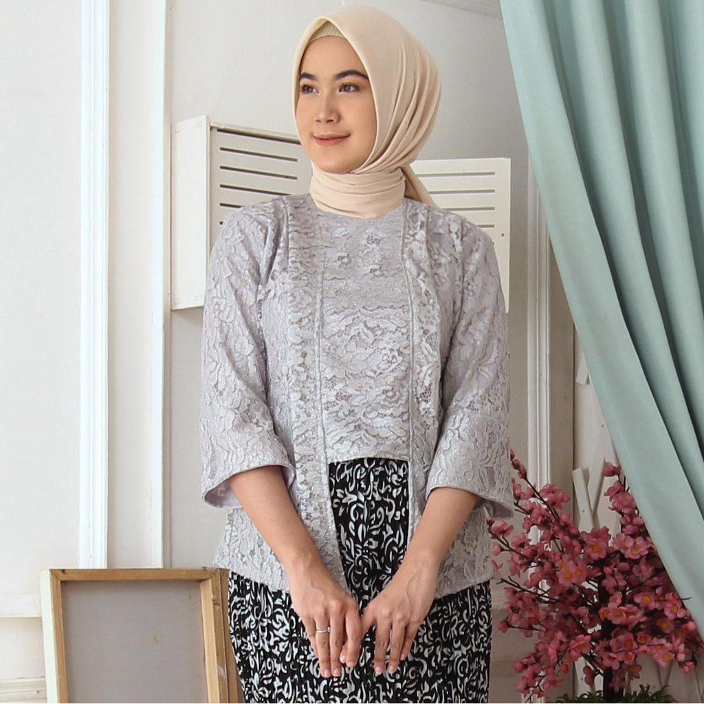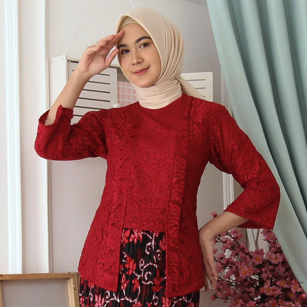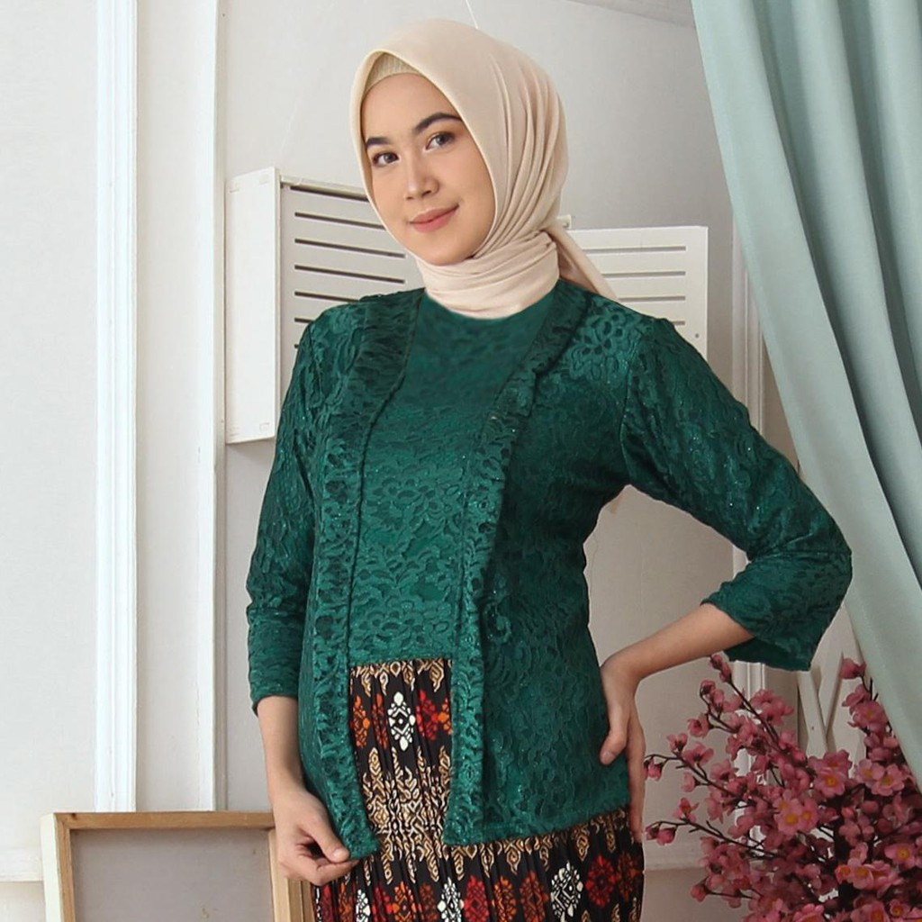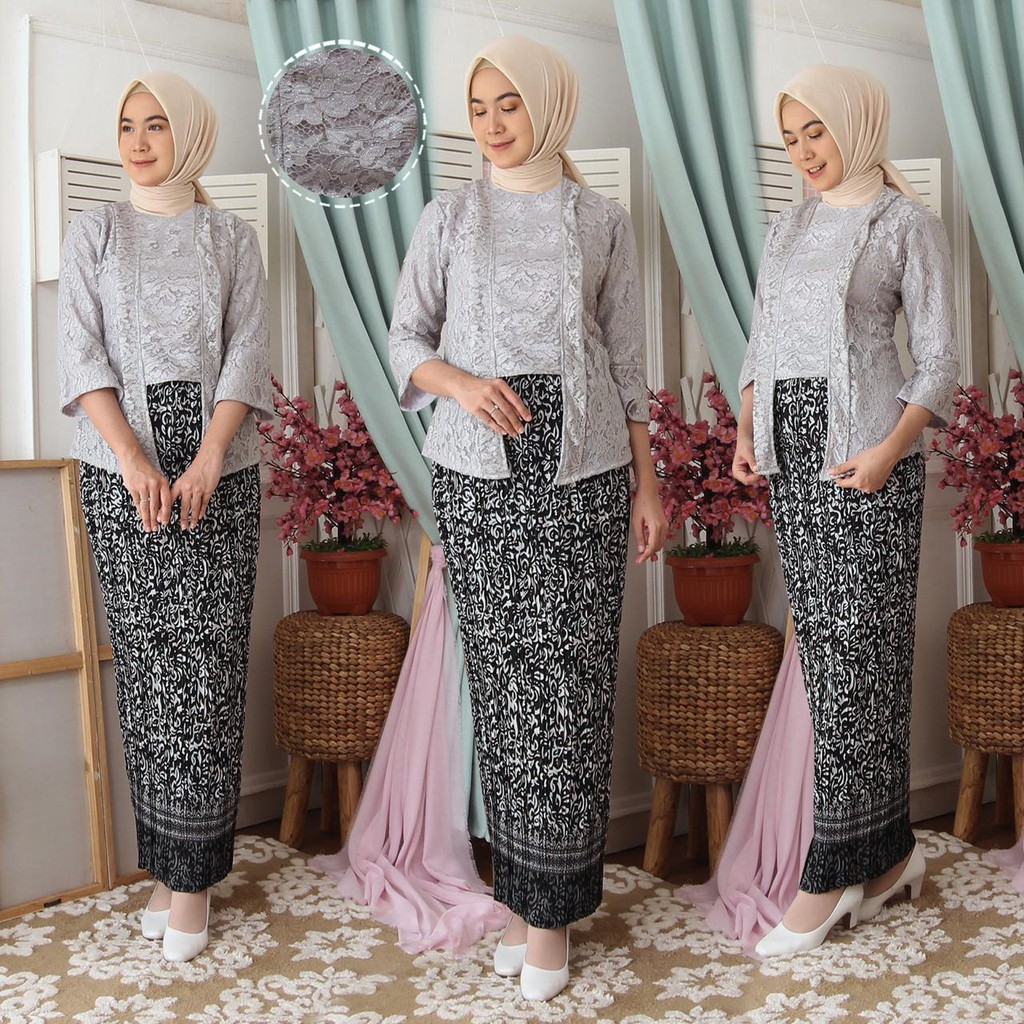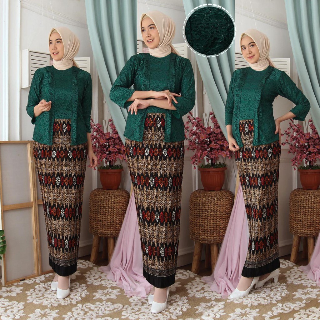 (Jamin RealPict) Kebaya Kartini Floy Brukat Tulang Glitter Set Batik Kebaya Wisuda Brokat Timbul