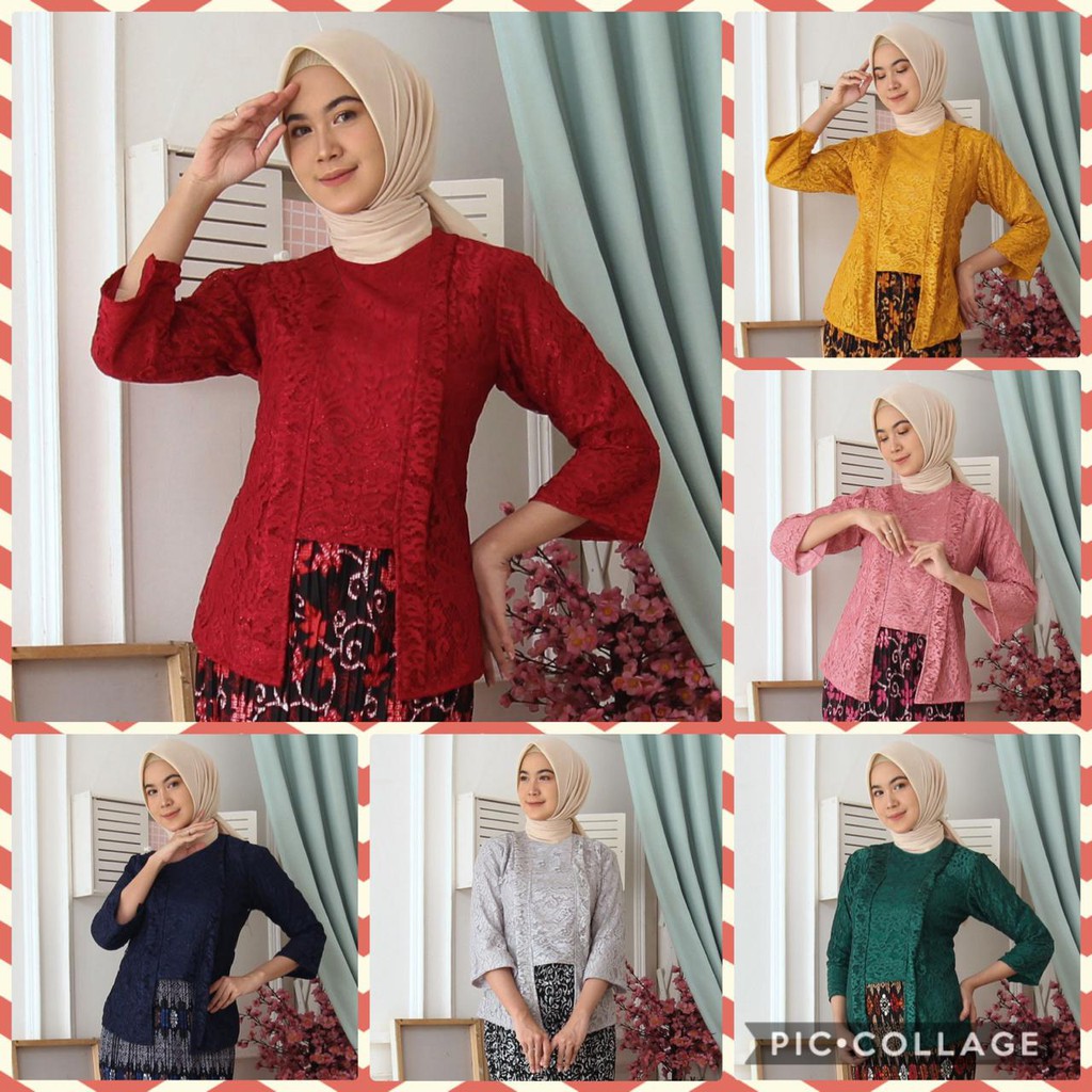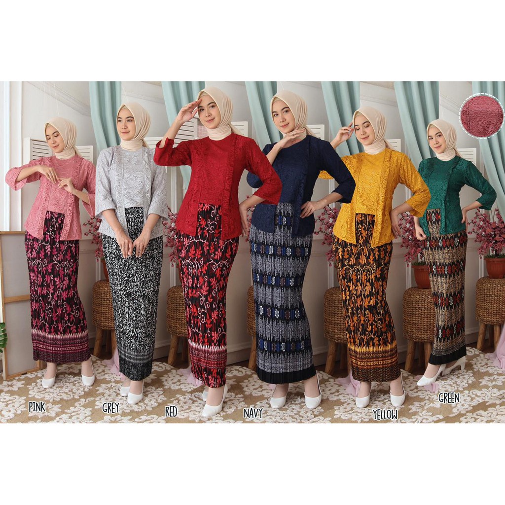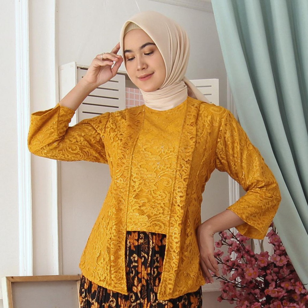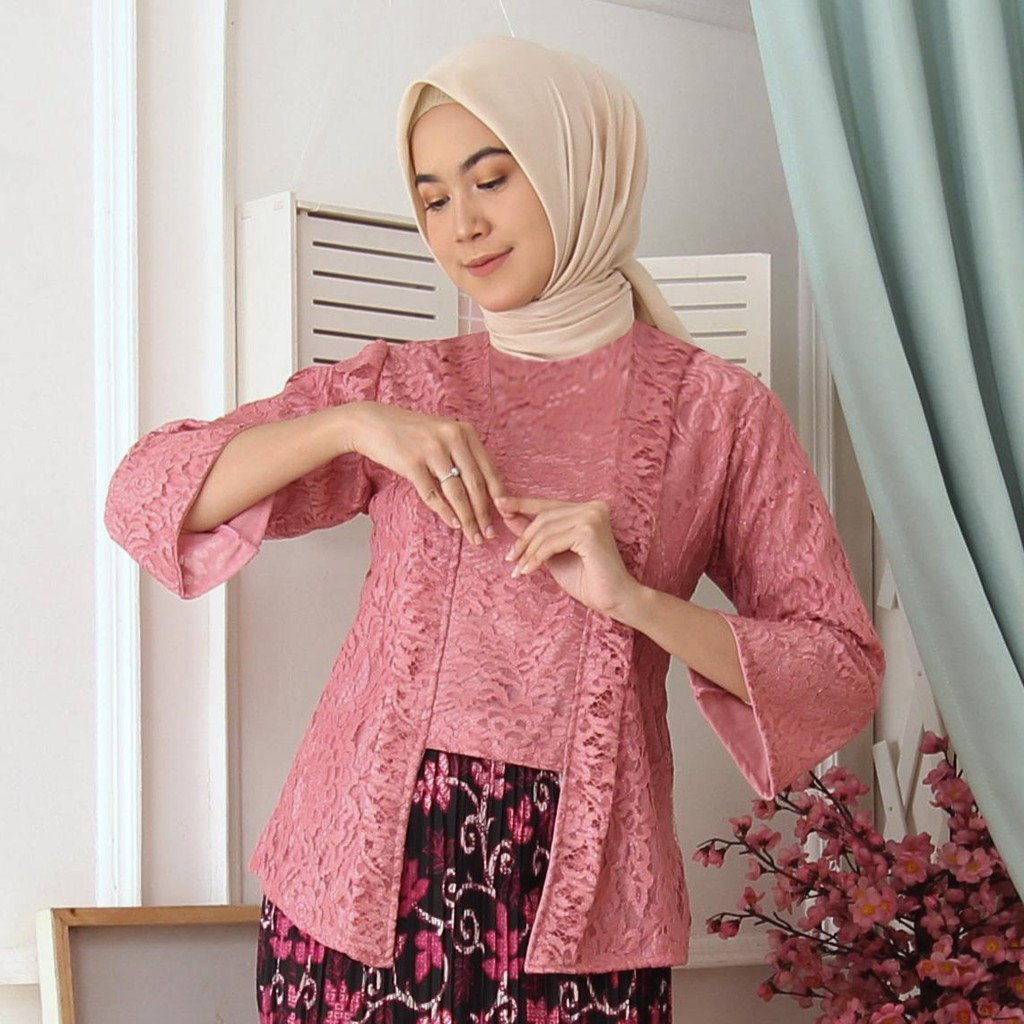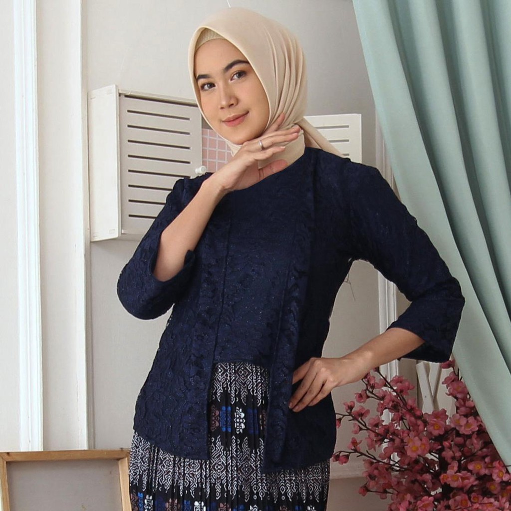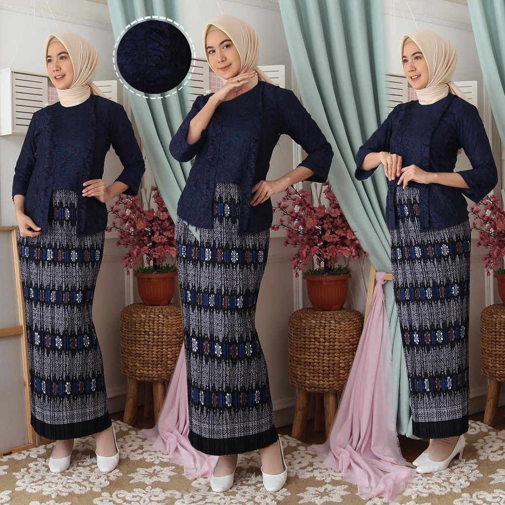 (Jamin RealPict) Kebaya Kartini Floy Brukat Tulang Glitter Set Batik Kebaya Wisuda Brokat Timbul