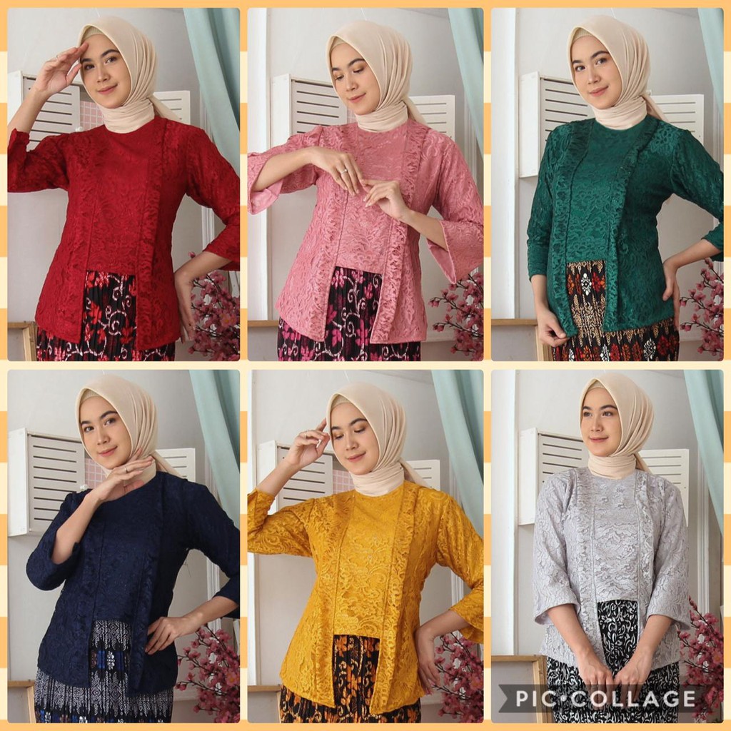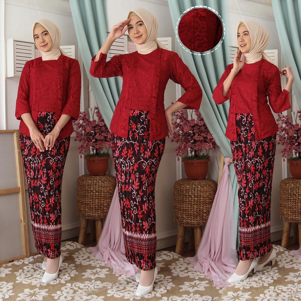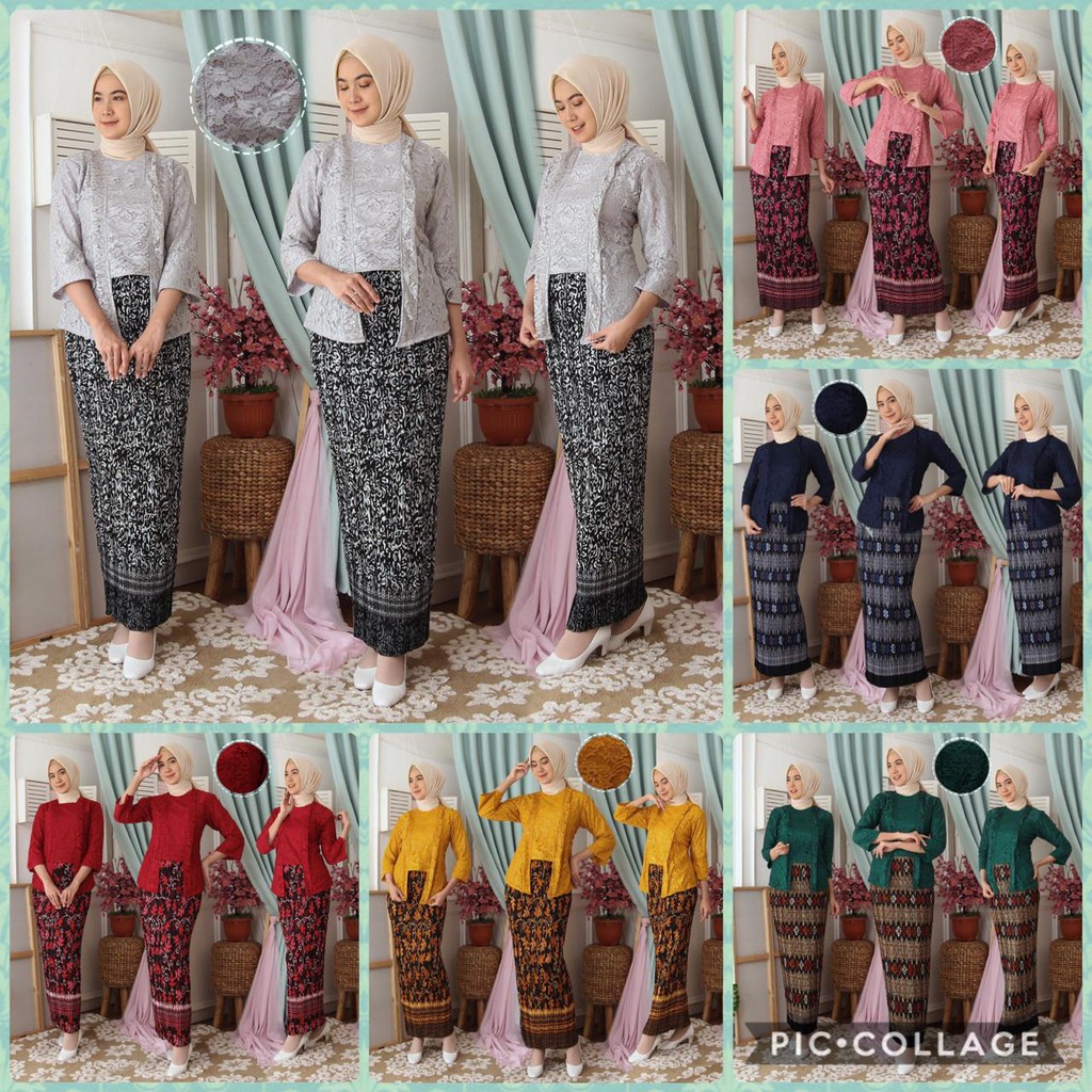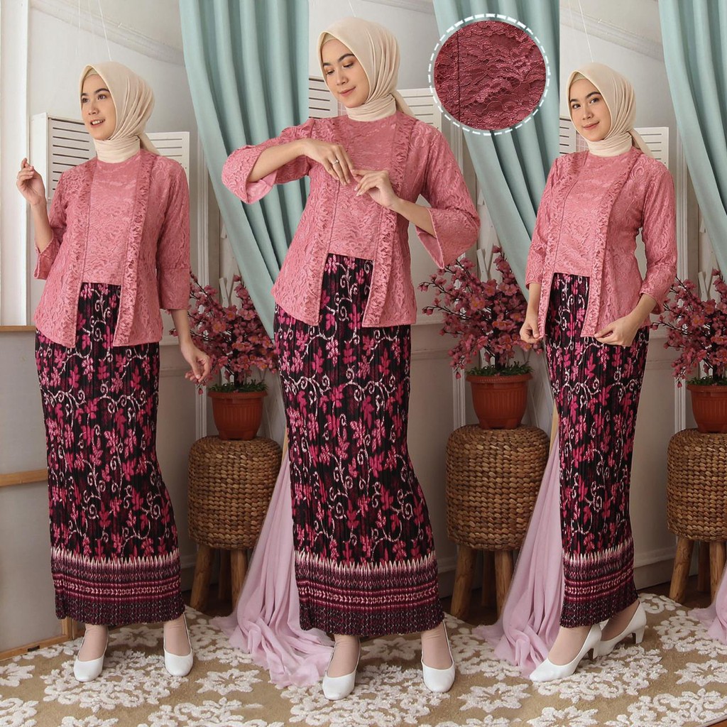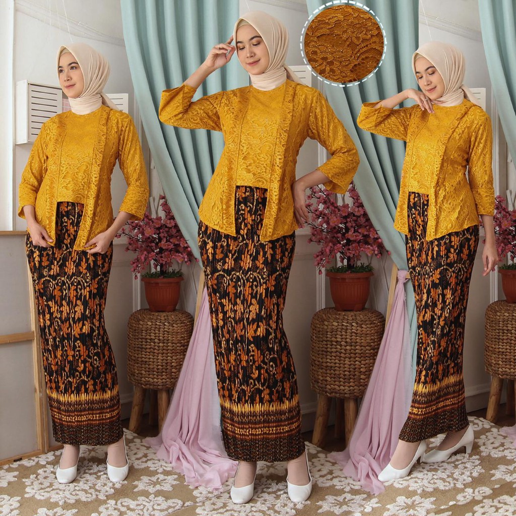 (Jamin RealPict) Kebaya Kartini Floy Brukat Tulang Glitter Set Batik Kebaya Wisuda Brokat Timbul