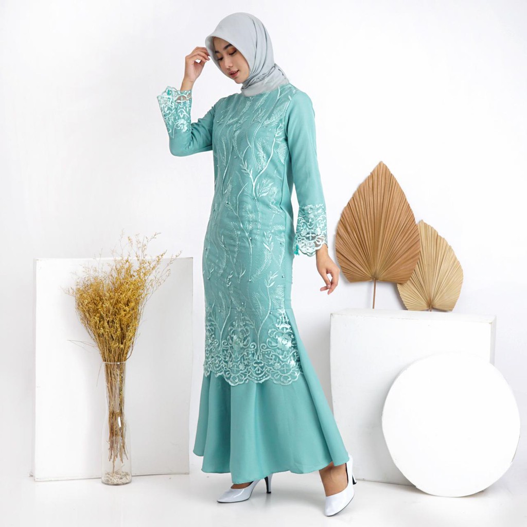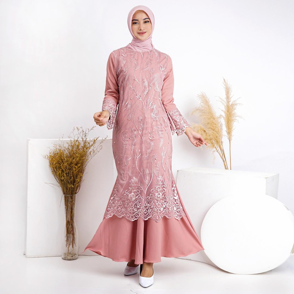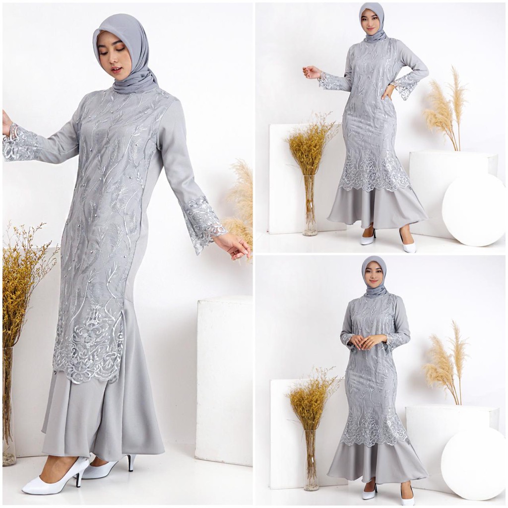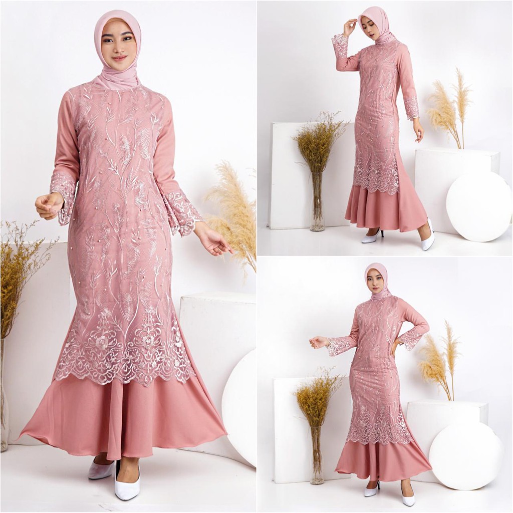 (Jamin RealPict) Maxi Elsa Brukat Tulle Bordir Gamis Pesta Lebaran Mewah 8 Warna Brokat Moscrepee