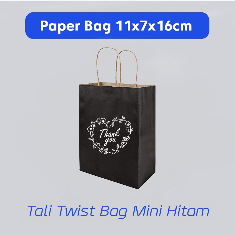 (KHUSUS CUSTOM) Pape Bag Warna Hitam Bebas Desain Uk. 11x6x16cm Papper Bag Kertas Kado Souvenir Packing Olshop Hampers Murah