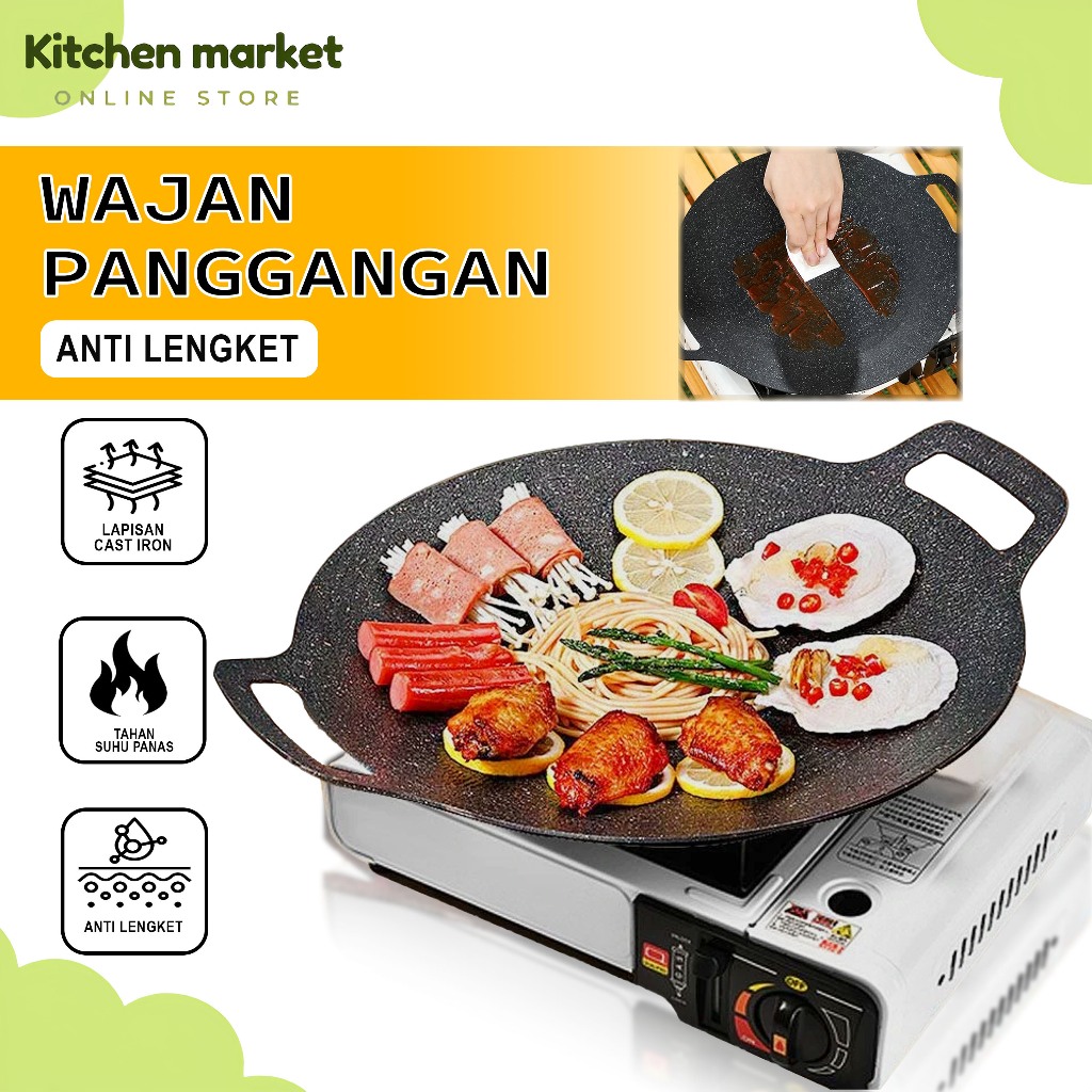 (KM) Alat Panggangan BBQ Grill Pan Korean Wajan Bulat Anti Lengket Serbaguna