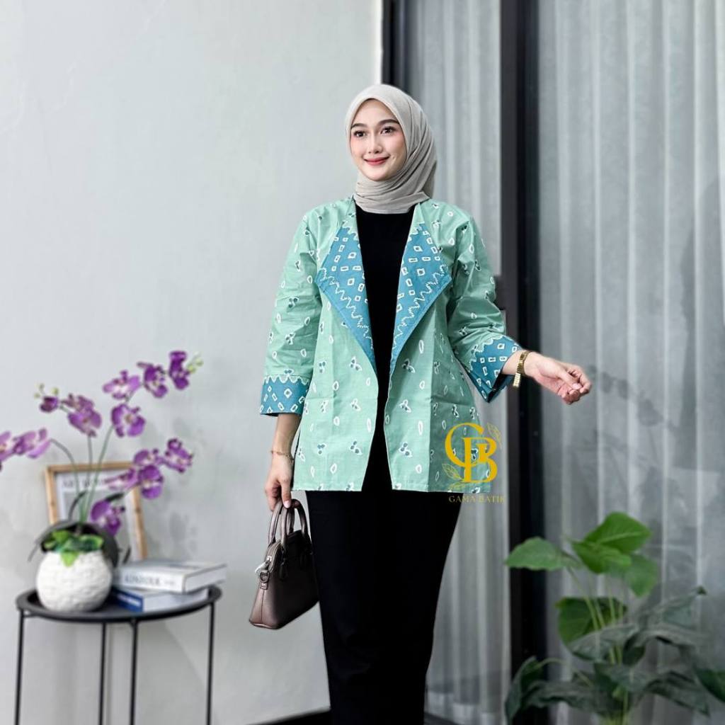 Blazzer/Outer Batik Atasan Wanita Elegan Modern Seragam Kantor