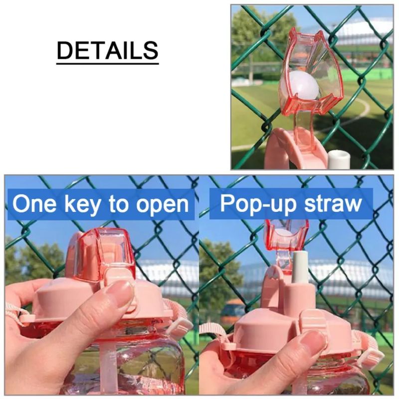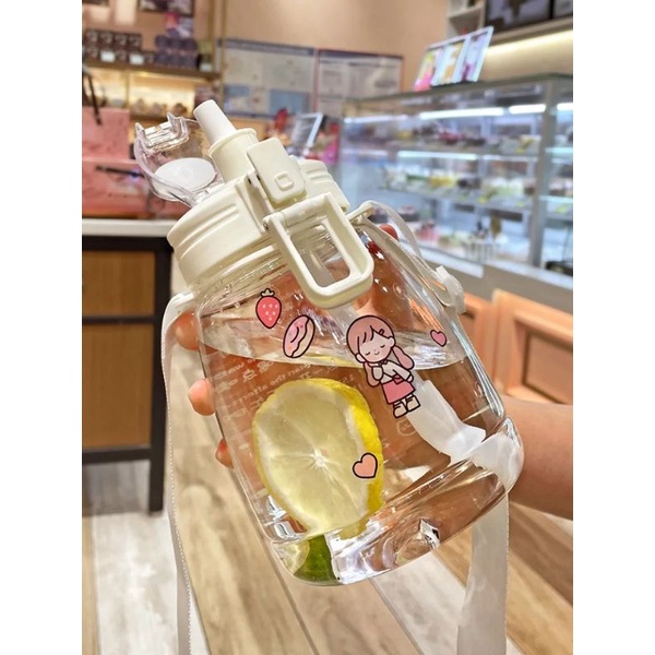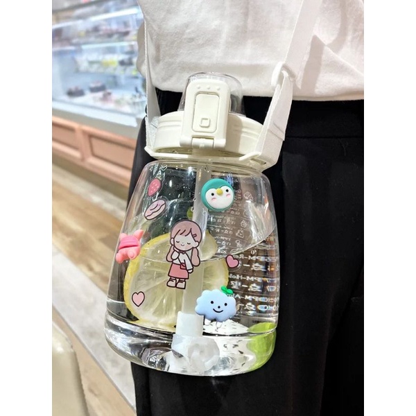 (MJS) Botol Polos Stiker 1L Big Bottle Sticker Anak Tempat Minum Lucu Sedotan Tali Panjang Anti Tumpah Botol Minum Plastik Kreatif Kids Tumbler