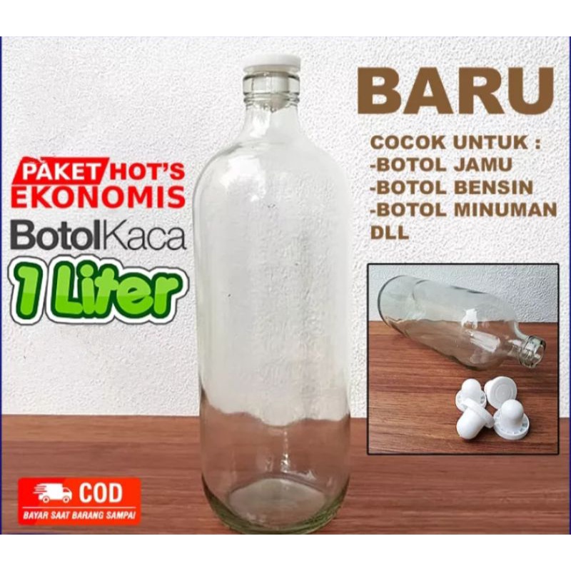 (MURAH) Botol kaca/ Botol jamu/Botol bensin ukuran 1000ml