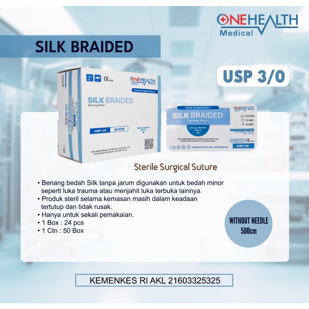 (MUTIARA ALKES) Catgut Silk GEA - Benang Jahit Silk - Benang Operasi Silk - Surgical Suture Silk GEA ONEHEALTH