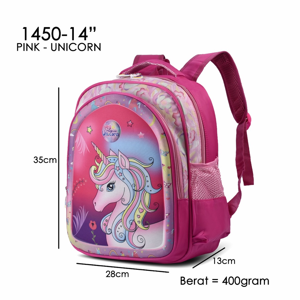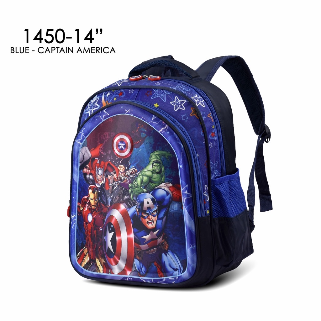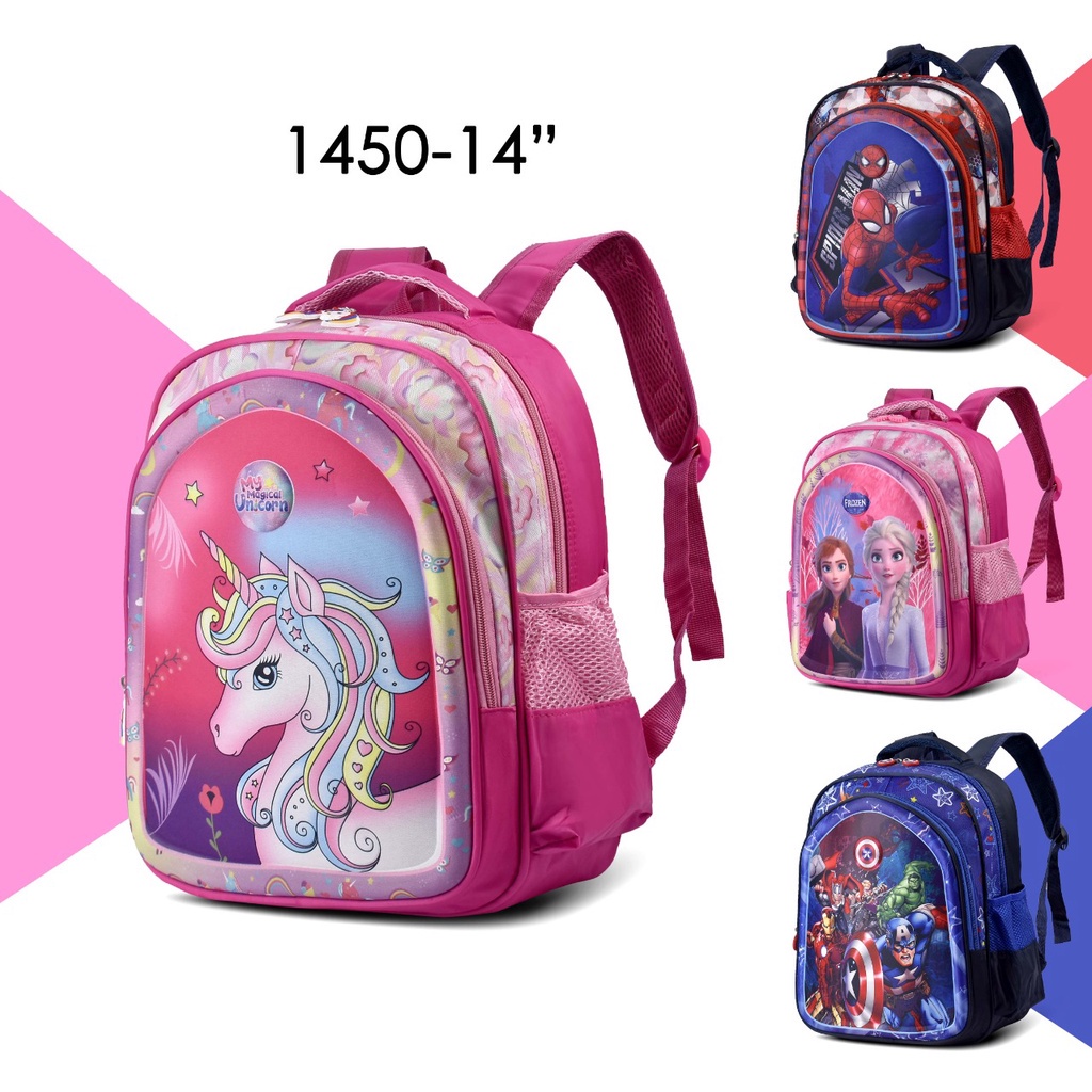 (MeilaShop) Tas Sekolah Cartoon 1450 14 Inch Tas Cartoon Perempuan & Ransel Cartoon Laki Laki Fashion Motif Captain America,Frozen,Spiderman Dan Unicorn