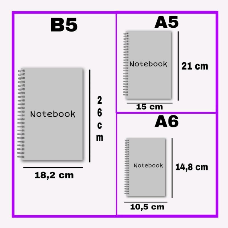 (NS-002) BUKU TULIS NOTEBOOK Kraft A6 / A5 / A4 catatan SPIRAL ISI POLOS GARIS HVS RING TEBAL 100 HALAMAN