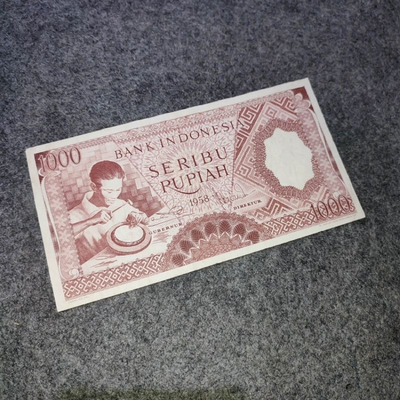 (ORIGINAL) Uang kuno 1000 rupiah seri pekerja merah tahun 1958