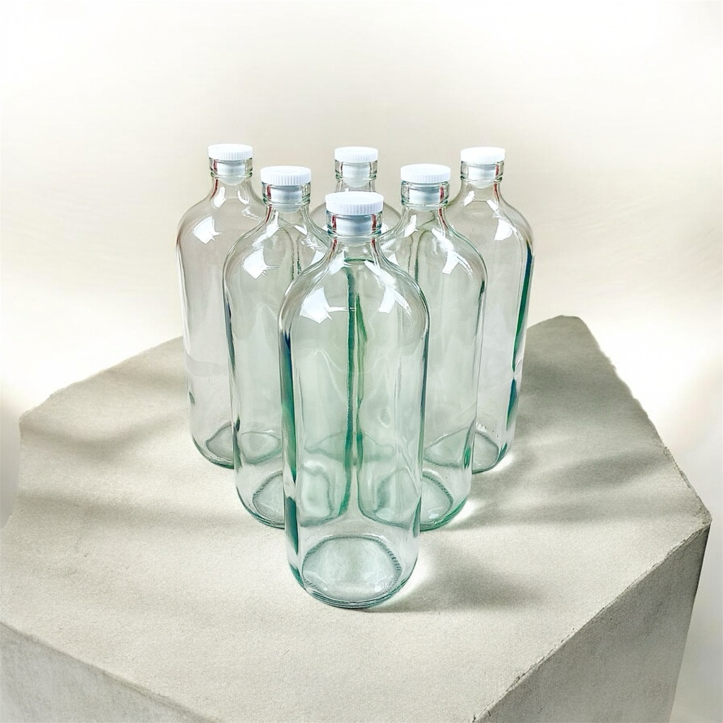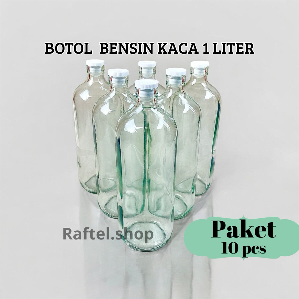BOTOL KACA 1 LITER ( paket 10 pcs ) botol bensin, botol jamu,botol minuman 100% botol baru