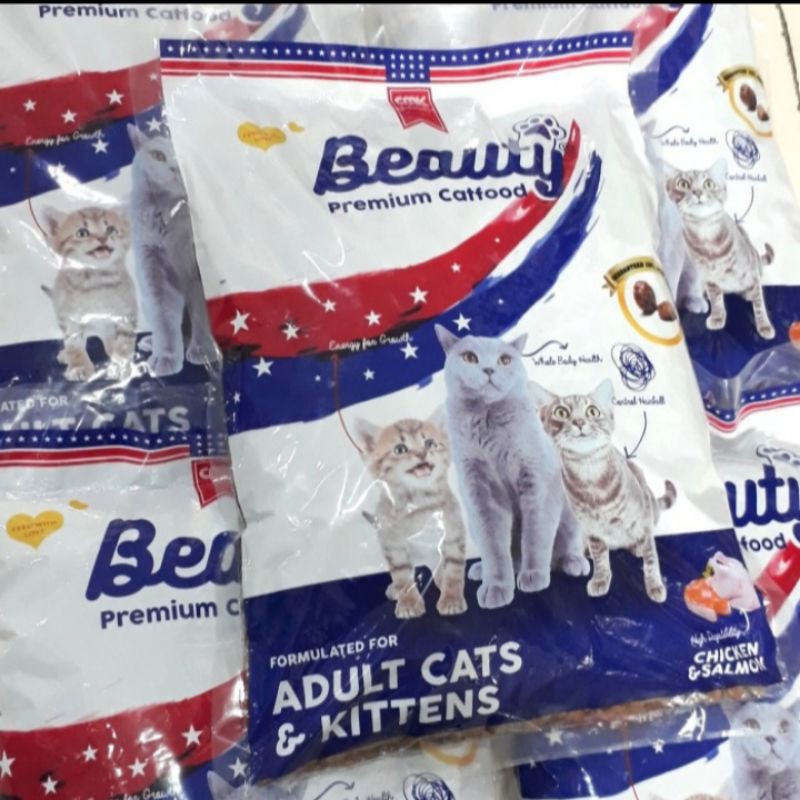 (Paket 5 pcs) Beauty Premium Cat Food 5kg-adult&kitten - makanan kucing segala usia