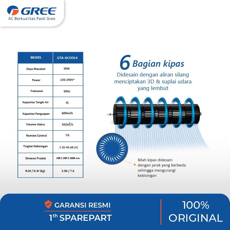 (READY COD) (DISKON 50RB) - GREE AIR COOLER GTA-ACOOL4 / GTA ACOOL 4 / GTA ACOOL4 (4 LITER) GARANSI RESMI