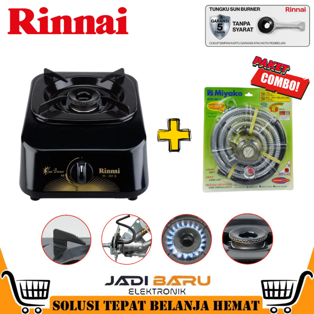 (READY COD) KOMPOR GAS RINNAI RI 301S / RI 301 S / RI301S / RI-201S / RI201S [1 TUNGKU] (GARANSI RESMI) 4.8