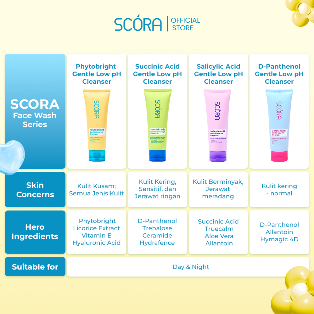 SCORA 1% Salicylic Acid Gentle Low pH Cleanser | SCORA Face Wash D-Panthenol Phytobright Succinic Facial Wash