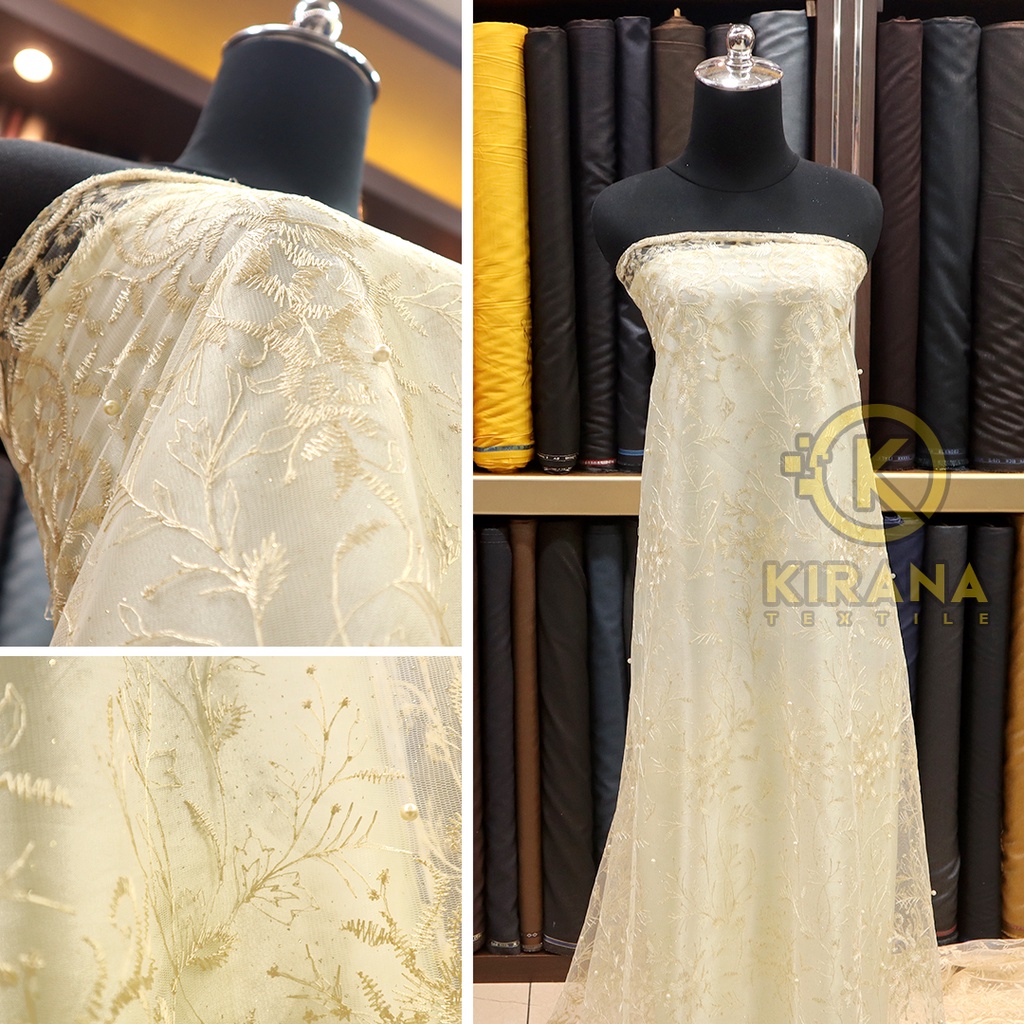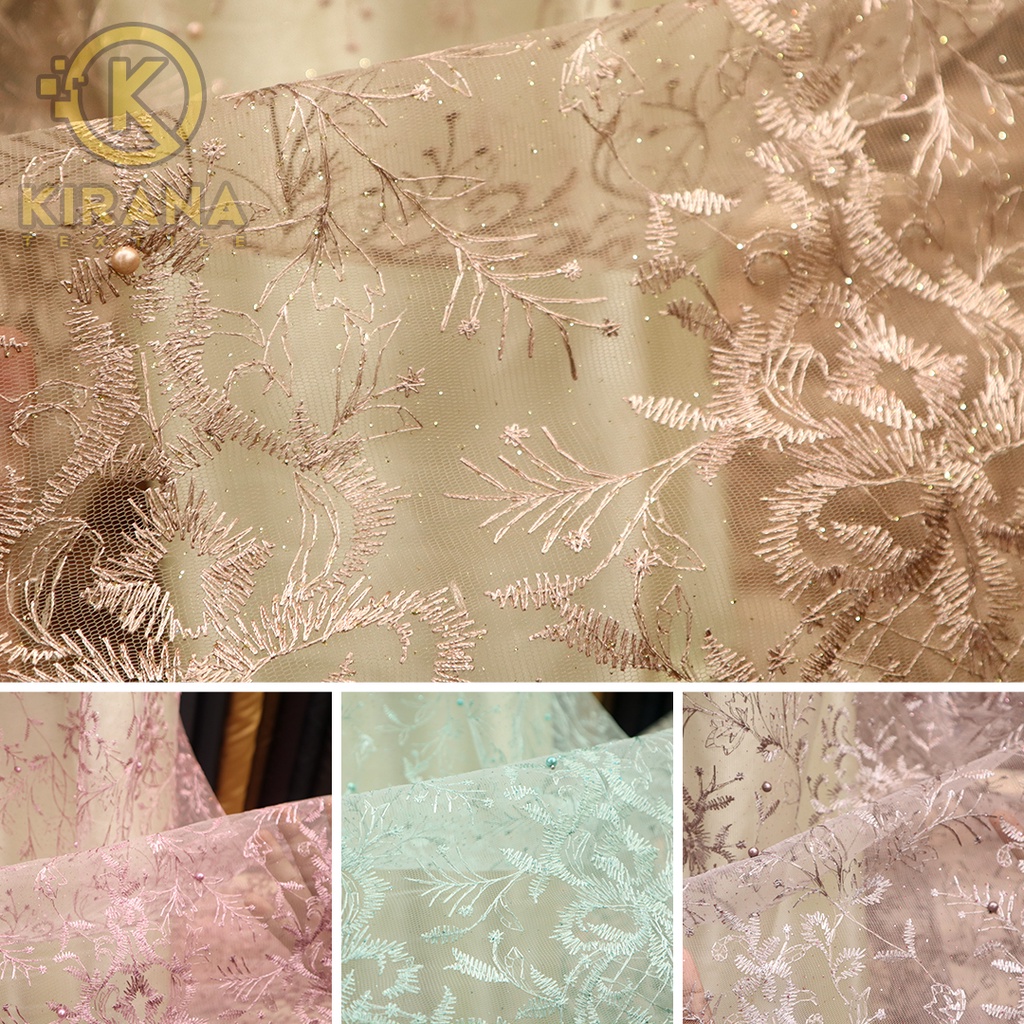 (SALE) Kain tile tule tille motif bunga mutiara/ kain tile mutiara pinggiran /kain tile brokat kebaya