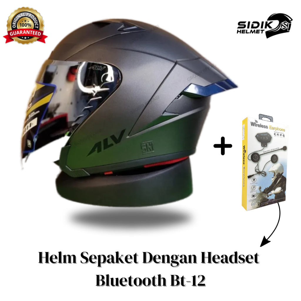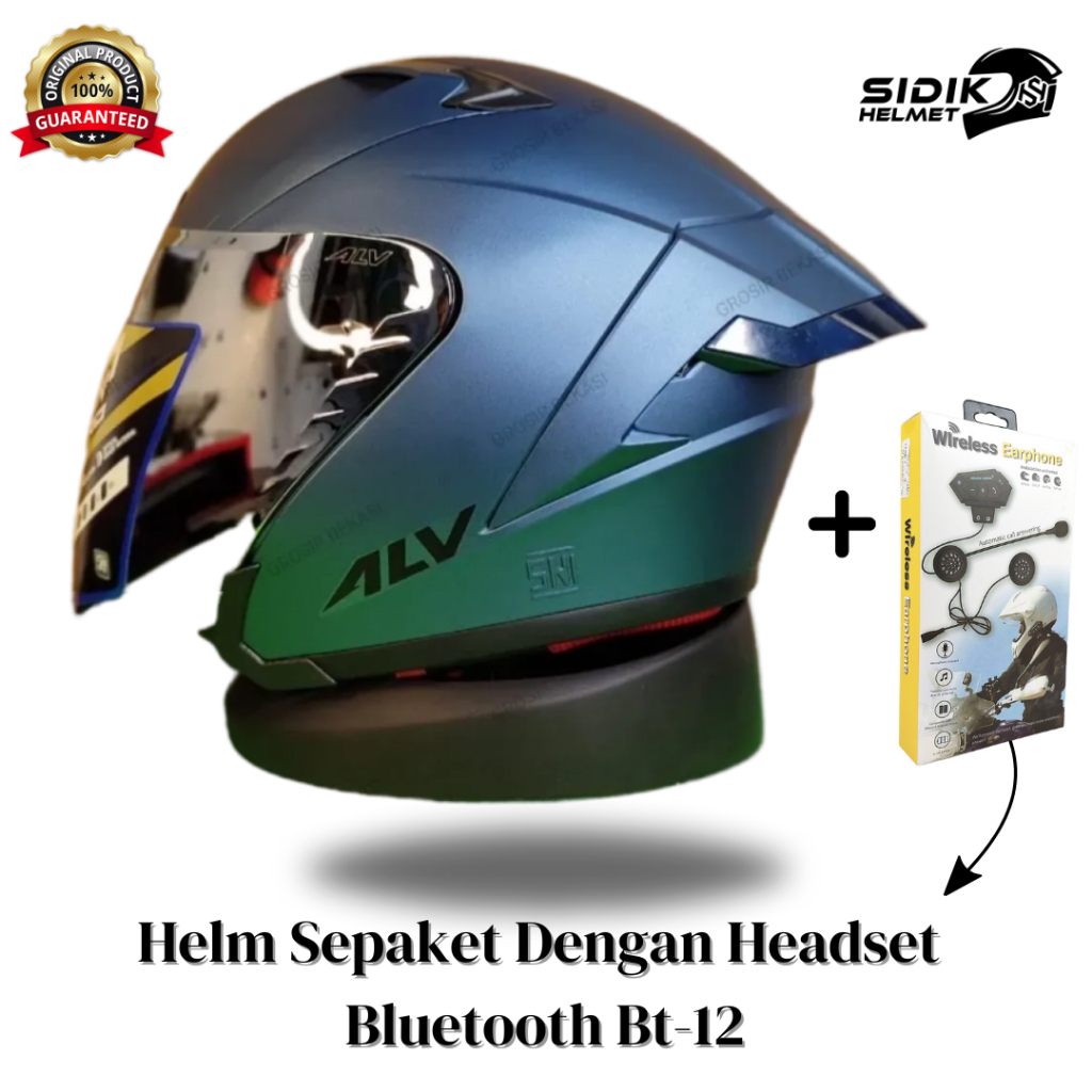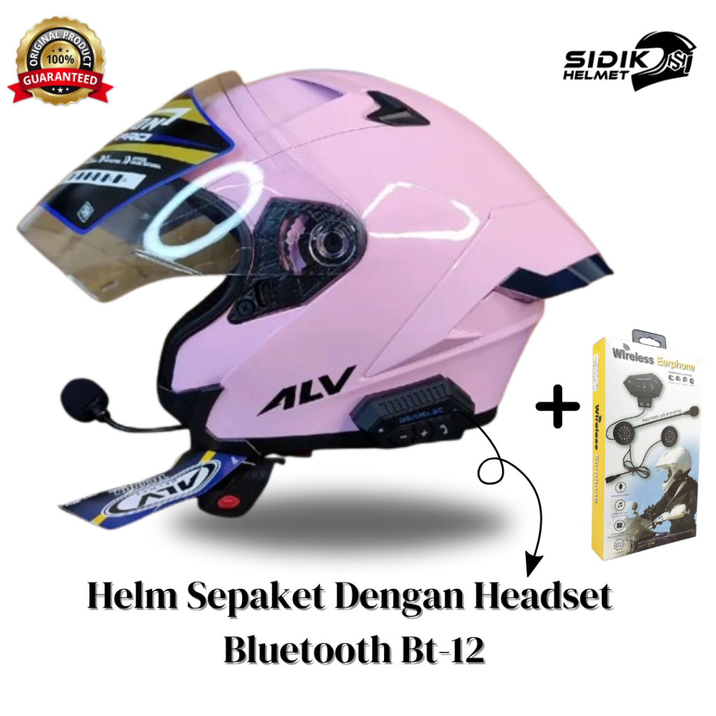 (SEPAKET)HELM ALV ULTRON PRO DENGAN HEADSET BLUETOOTH BT-12 100% ORIGINAL, HELM ALV FREE SPOILER Helmet Half face terbaik,Terlaris Bestseller, Alv ultron pro paket ganteng