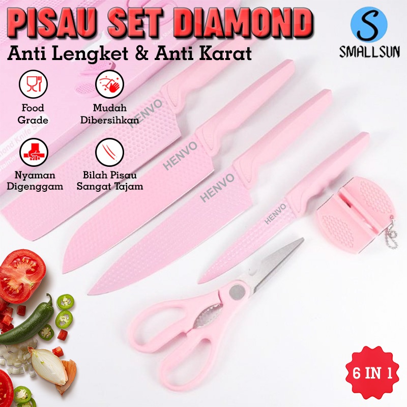 (SS) Pisau Dapur Diamond Pisau Dapur Set 6 in 1 + Pengasah Pisau Steincookware Stein