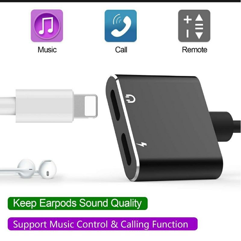 (SUPPORT OPEN MIC) ADAPTER DUAL LIGHTNING TO LIGHTNING IPHONE | CONVERTER 2IN1 AUDIO+CHARGER IPHONE | SPLITTER IPHONE MURAH