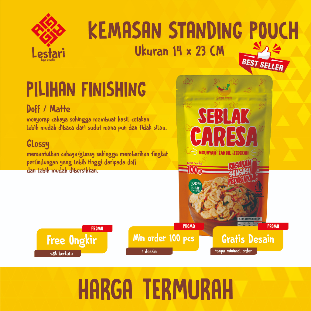 (TERMURAH) UMUM CETAK KEMASAN STANDING POUCH FULL PRINTING