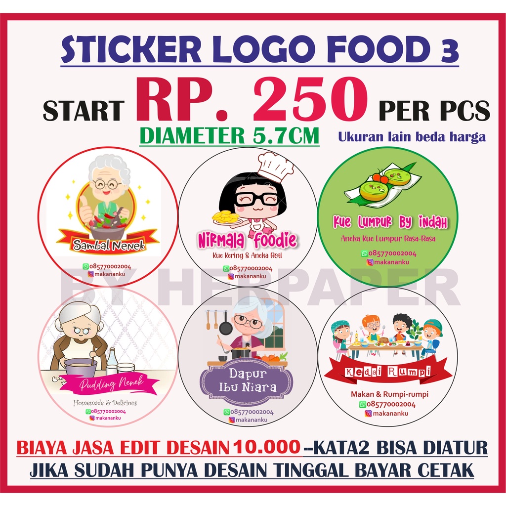(TERMURAH BANGET). STIKER MAKANAN. logo produk/label kue / logo makanan/ logo skincare/logo olshop