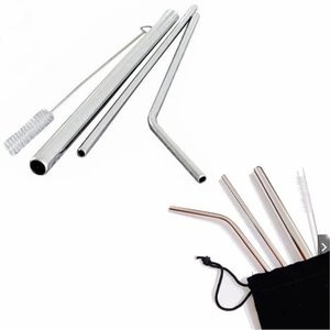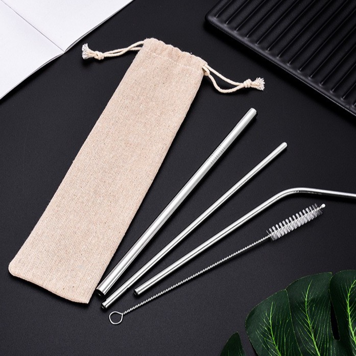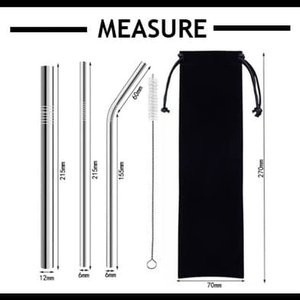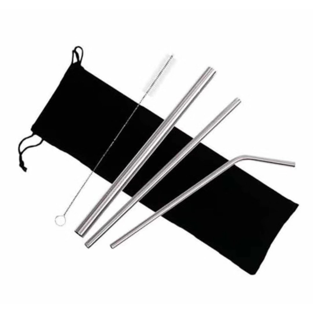 (TOKO_RICI) Reusable Stainless Straw Set 5PCS / Sedotan Stainless Steel Set / Sedotan Sikat Sedotan