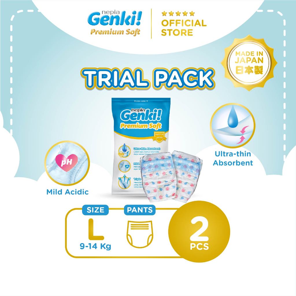 (Trial Pack) SPECIAL GIFT Nepia Genki Popok Bayi Tape / Perekat NB / S / M / L / XL / Pants / Celana Soft Care / M / L / XL / XXL