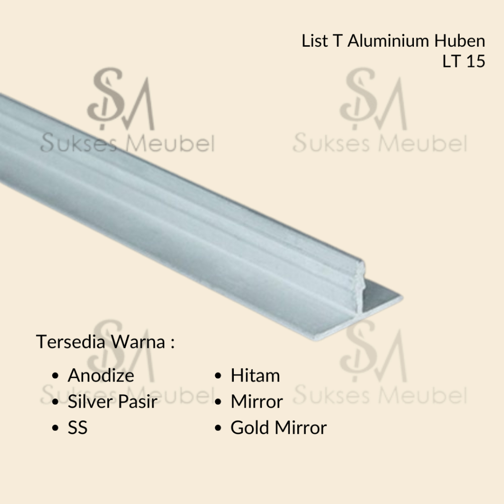 (UTUH 3 METER) HUBEN List T Aluminium 3 Meter LT 15 | Lebar 15 mm