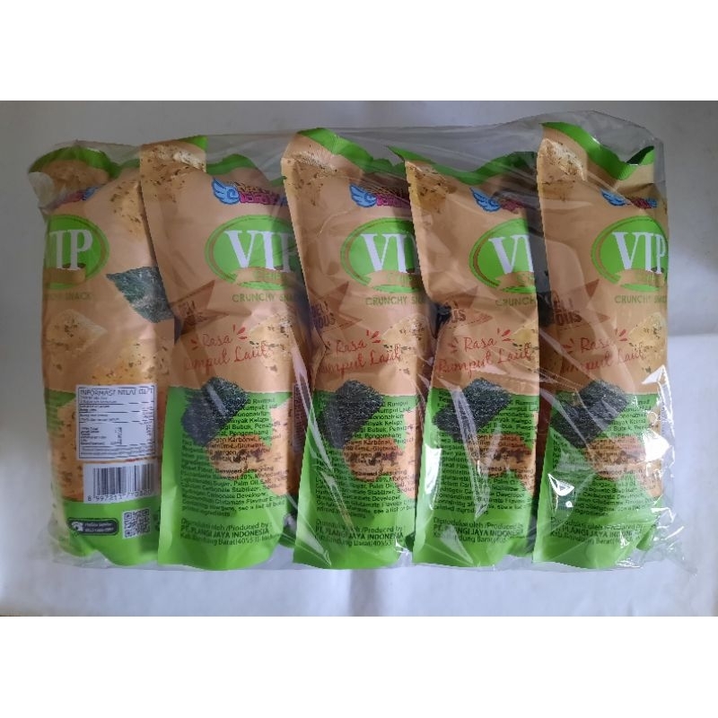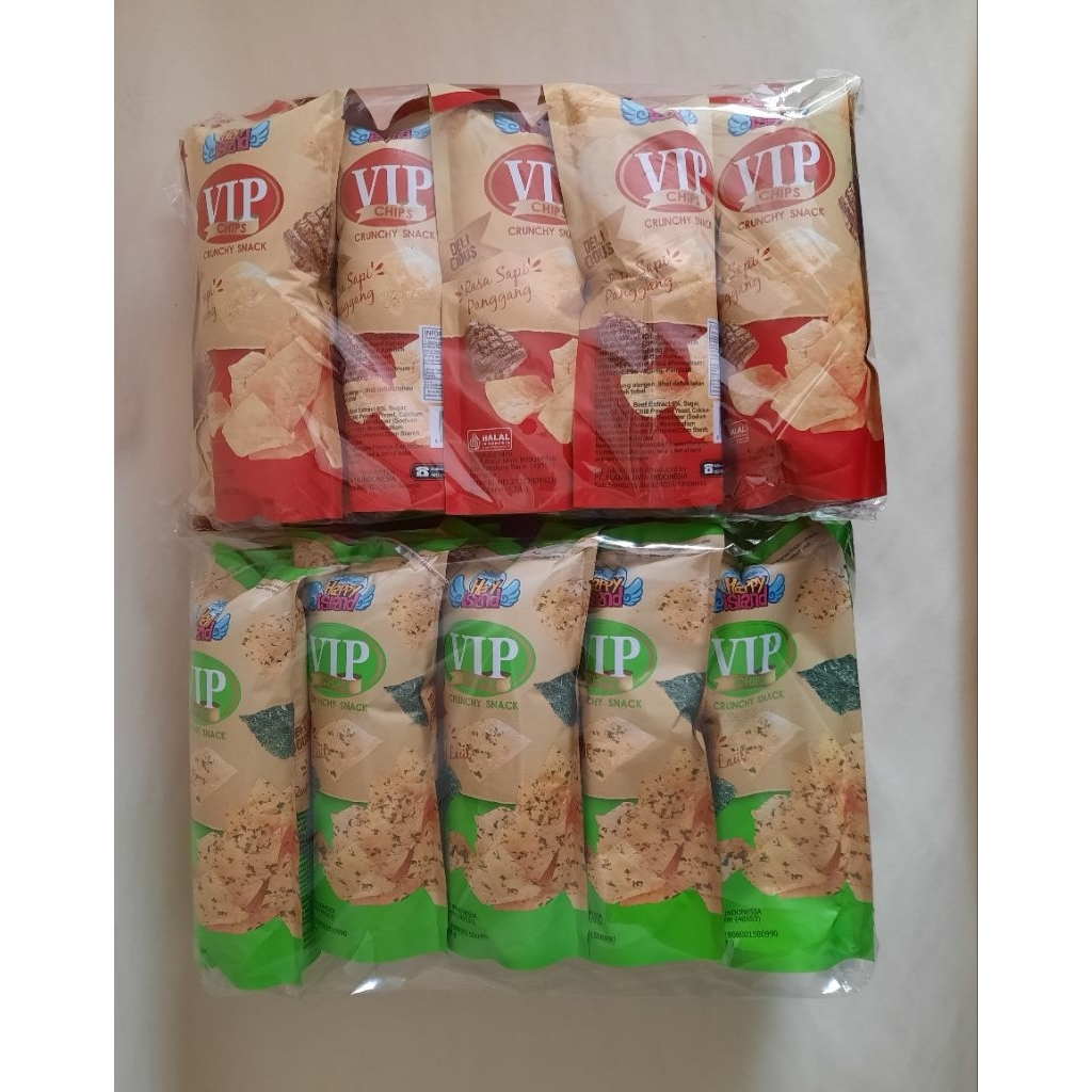 (bisa mix 5 sapi 5 rumput selama stok ada) VIP chips happy islands crunchy snack rasa rumput laut/sapi panggang per pack (10 bungkus)