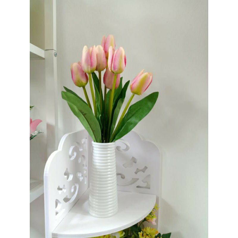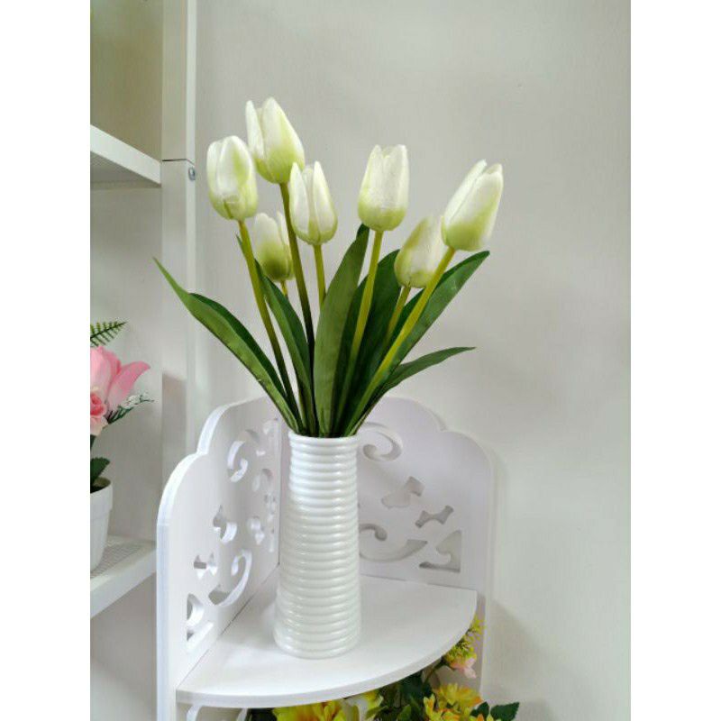 (bunga + pot )tulip artifivial vas ulir//satu set bunga dan vas bunga tulip artificial
