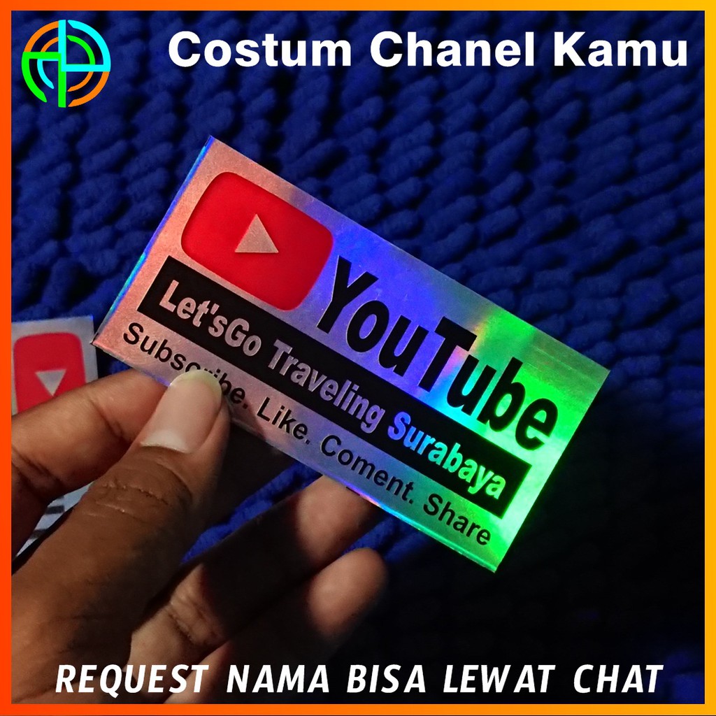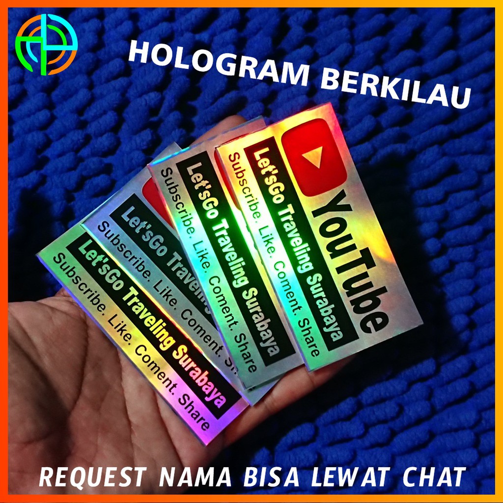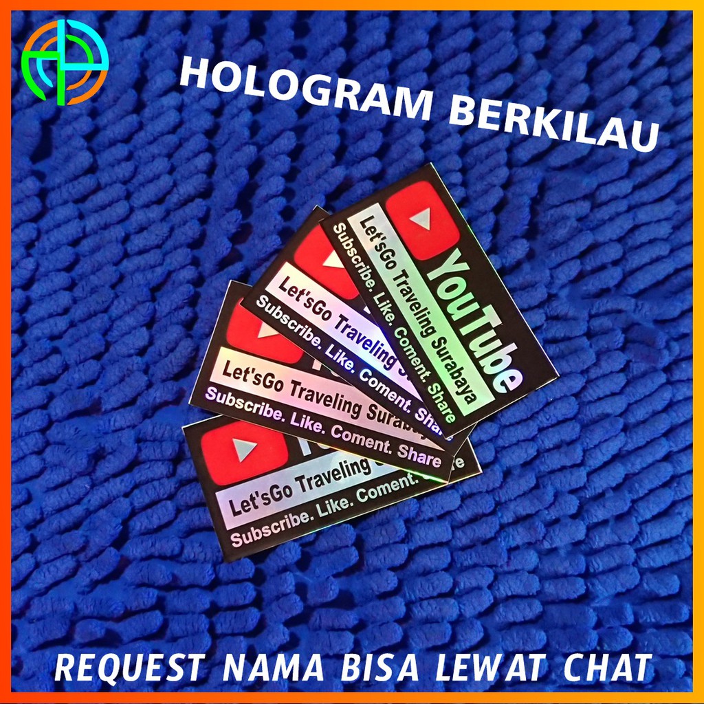 (isi 10) Hologram Stiker Costum Nama Youtube Channel Black Bahan Vynil Sticker Youtuber Subscriber