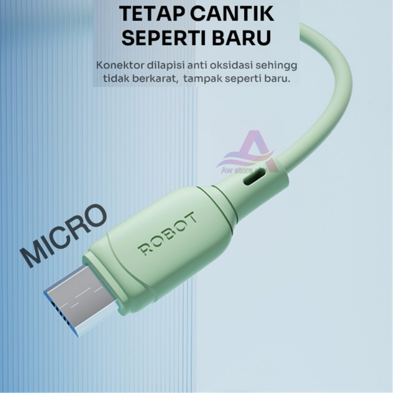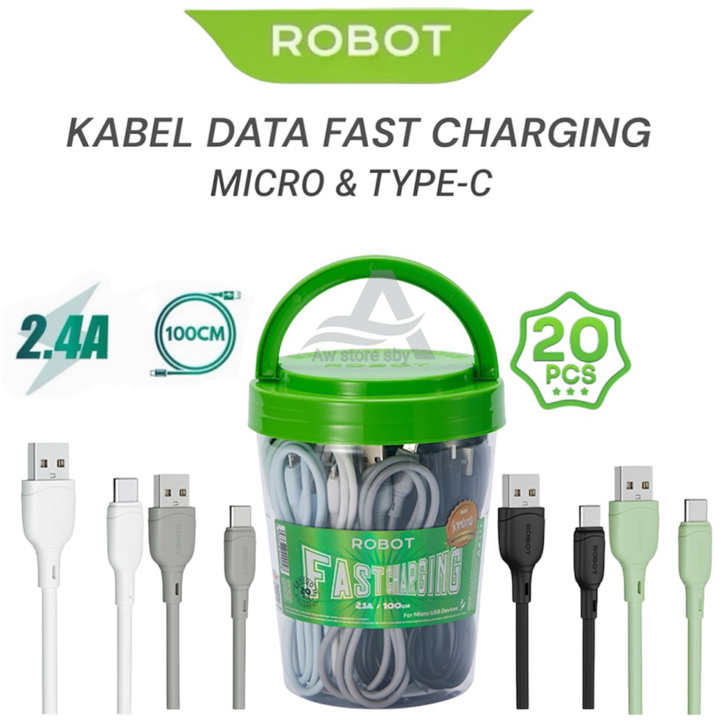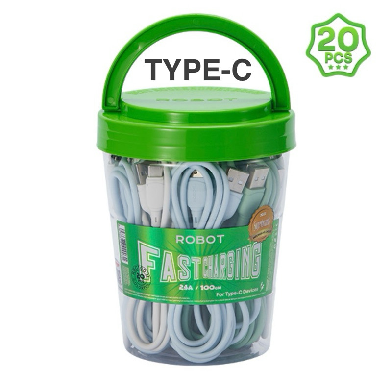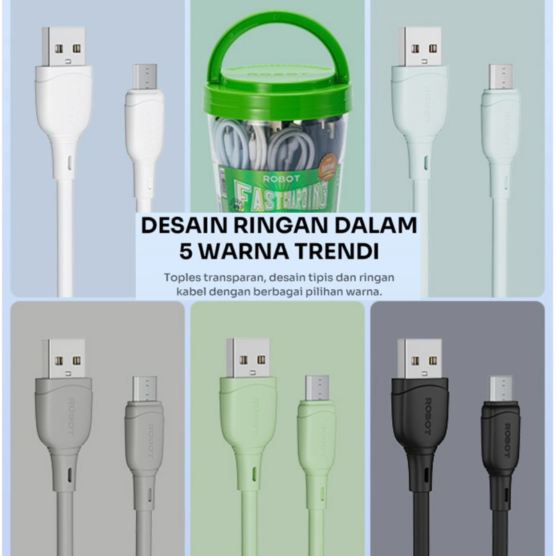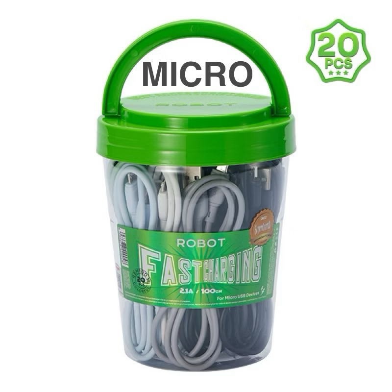 (isi 20) Kabel data Micro Usb/ Type C/ Lightning Fast Charging 100cm Satu Toples isi 20pcs Robot RBM RBC 306-M 306-C 306-L