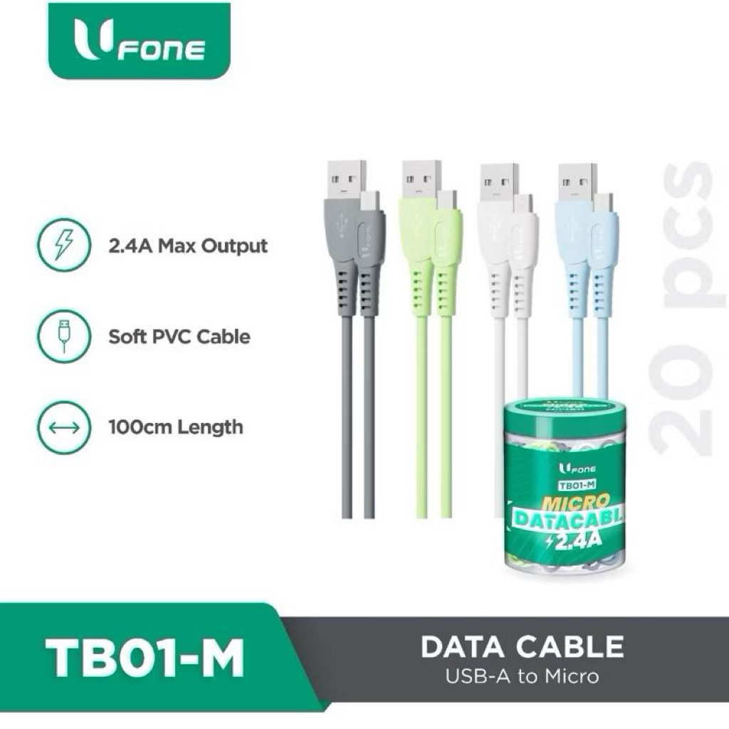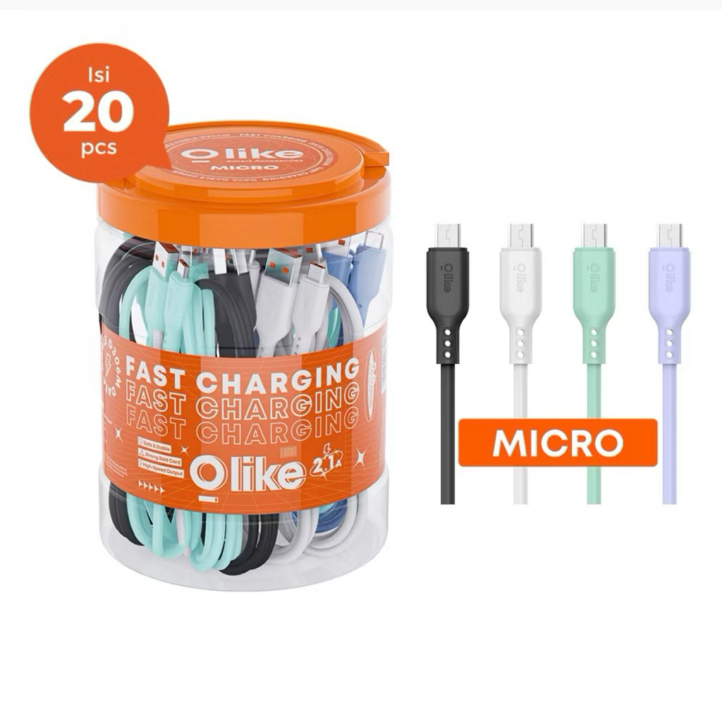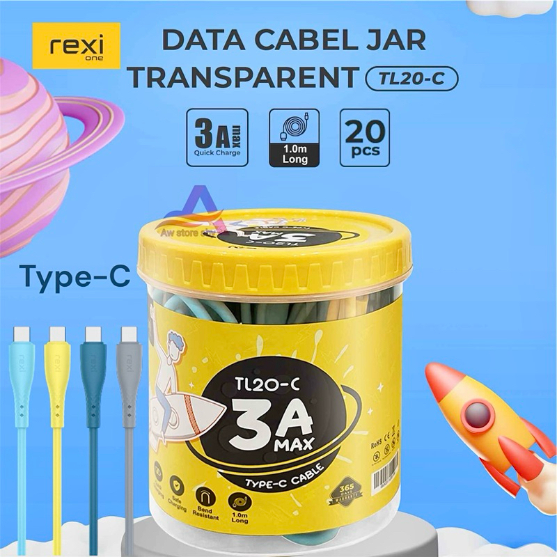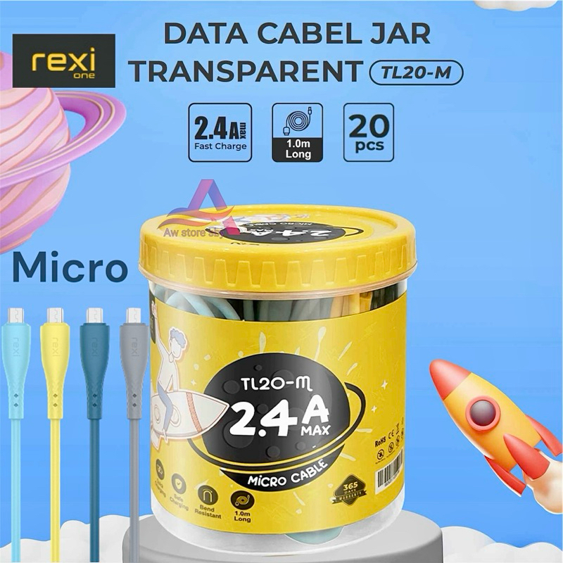 (isi 20) Kabel data Micro Usb/ Type C/ Lightning Fast Charging 100cm Satu Toples isi 20pcs Robot RBM RBC 306-M 306-C 306-L