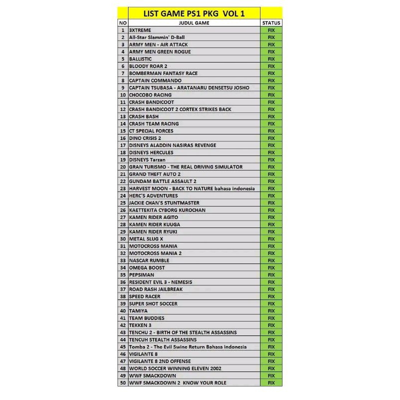 (paket nostalgia)50 GAME PS1 FORMAT PKG BUAT PS3
