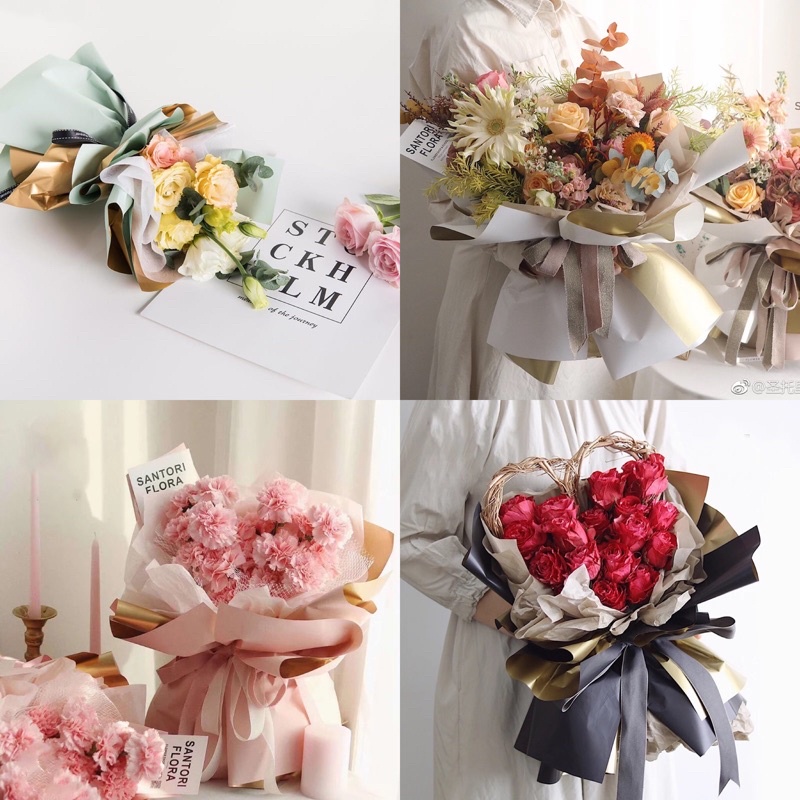 *5 LEMBAR* Kertas Buket Bunga Cellophane (Gold Color) Flower Wrapping Paper Celophane / Chellophane Murah untuk Snack Uang