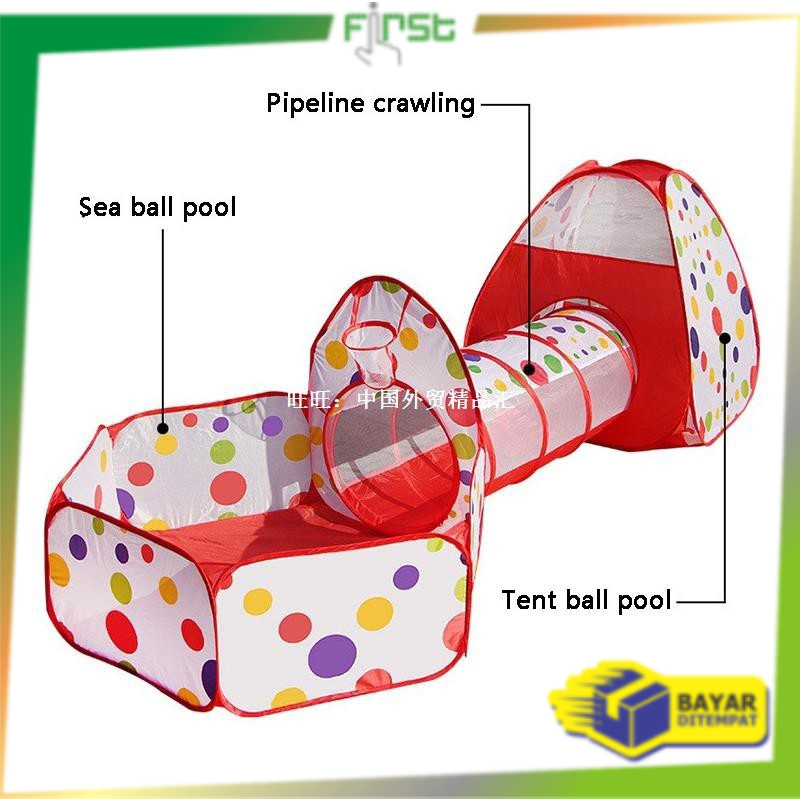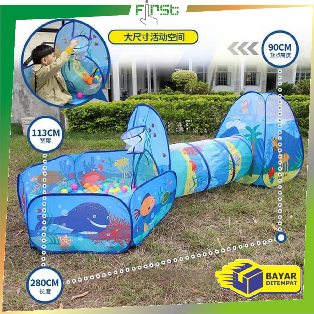 *COD* FH-M6 Mainan Tenda Anak Terowongan 4in1 + Kolam + Ring Basket Mainan Keranjang Mandi Bola Anak