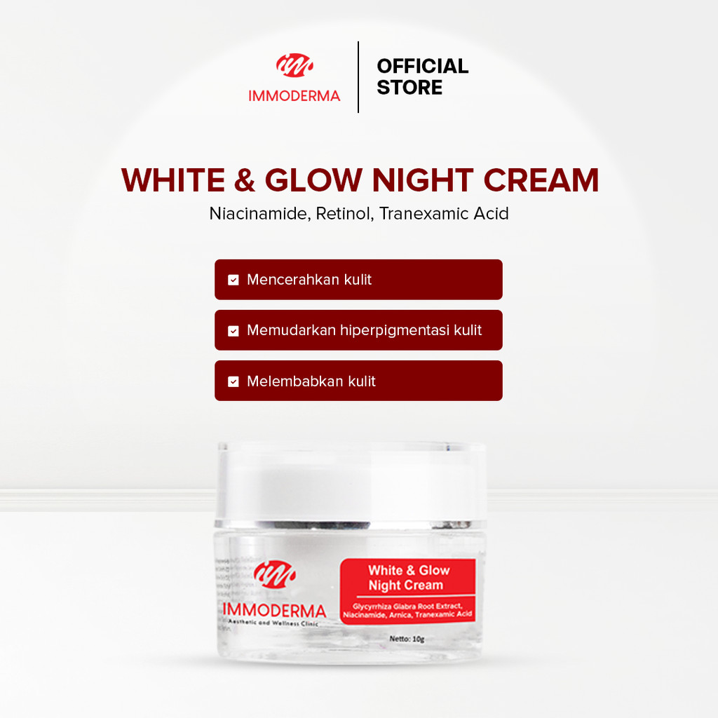 IMMODERMA White Glow Night Cream I Krim Niacinamide Pencerah Wajah Kusam I Rekomendasi Pelembab