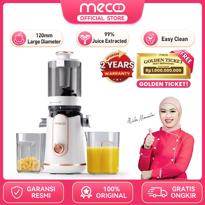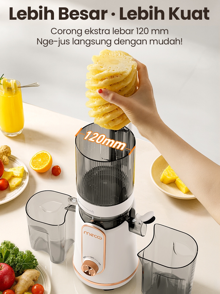 Mecoo Aesthetic Slow Juicer Pro 120mm Extra Big Mouth Extra Easy Clean Low Watt BPA Free Cold Press